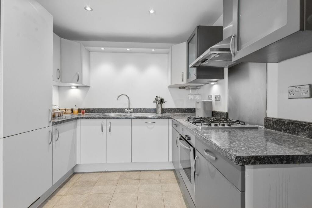The separate kitchen sits just off the main living area, offering a practical and well laid out space with room for preparation and storage, while remaining connected to the entertaining areas.