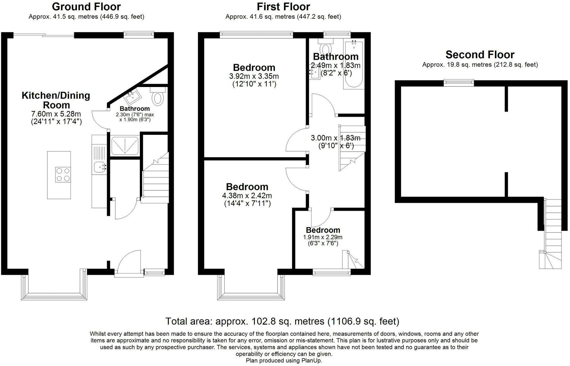 Upstairs, the first floor provides three well-proportioned bedrooms. The principal bedroom is a bright double, while a further double and a single offer excellent flexibility for family, guests, or a home office. A well-sized family bathroom completes this level.