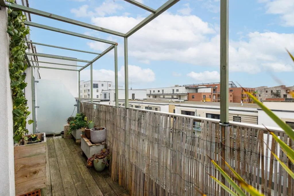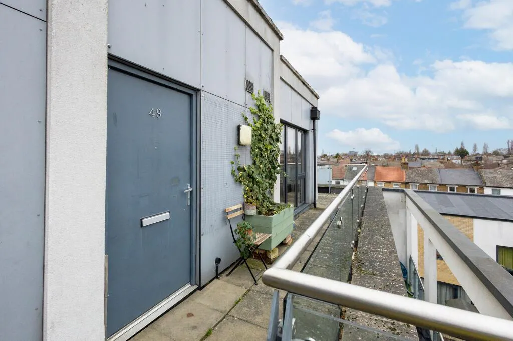The balcony spans the rear of the flat and is accessed from both bedrooms, extending the living space outdoors. The building also offers well-maintained communal areas, including a shared terrace, which are conveniently located and best appreciated during a viewing.