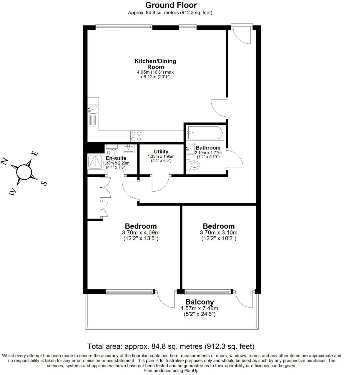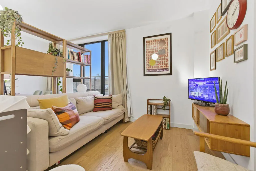 The flat is entered via a central hallway providing access to all principal rooms, creating a logical and efficient flow throughout the home. Built-in storage helps keep the living space organised and clutter-free.