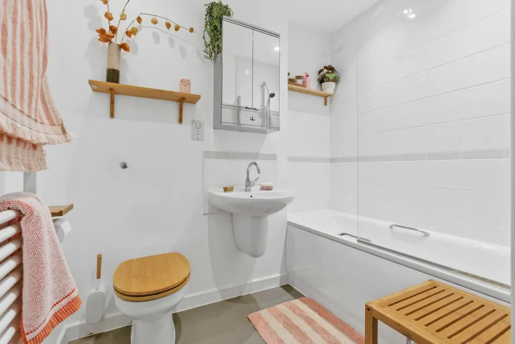 The family bathroom is accessed from the hallway and fitted with a full suite, serving guests and the second bedroom.