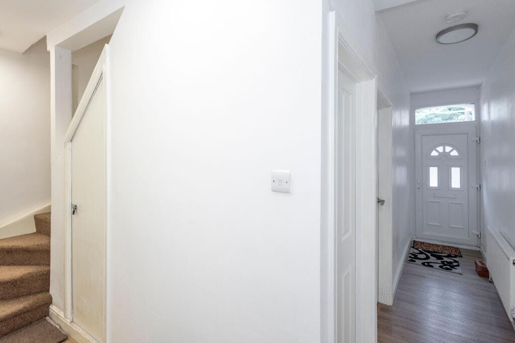 Upstairs, two further bedrooms provide well-proportioned accommodation, with the larger room offering space for storage or a seating area. A family bathroom, positioned between the two bedrooms, features a bath and provides easy access from both rooms.