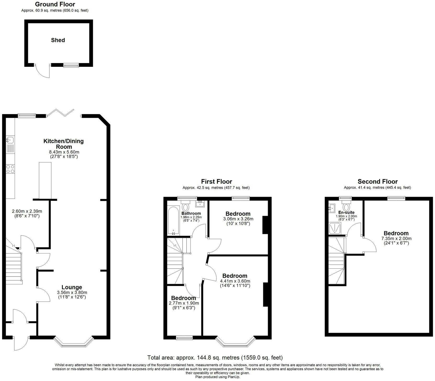 The rear garden also features a separate shed, providing useful storage or potential for a workshop or hobby space.
