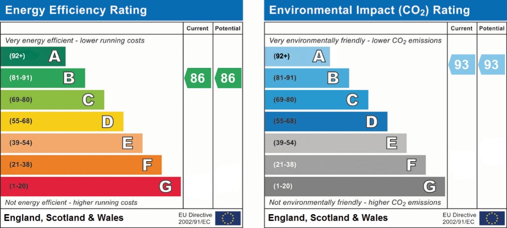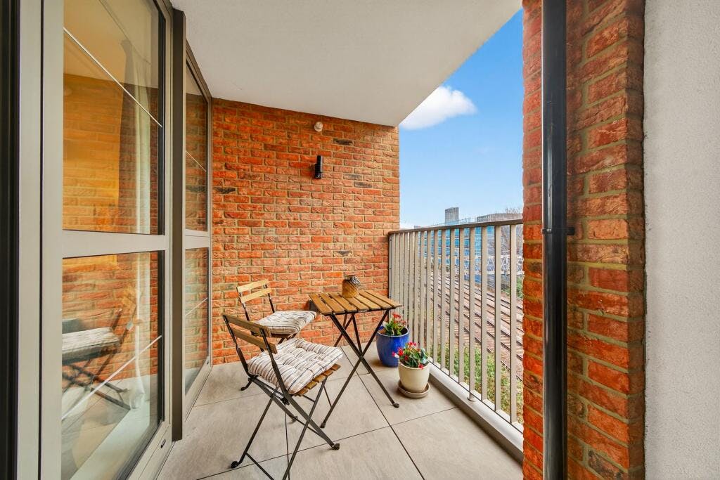 The property features a generous open plan living room and kitchen dining area with direct access to the balcony. Both bedrooms are genuine doubles, with the main bedroom benefitting from an en suite bathroom. A separate family bathroom and good hallway storage add to the practicality of the layout.