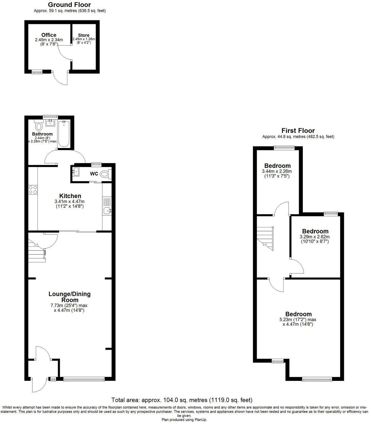 A separate rear outbuilding provides a dedicated office and a useful store room, offering flexible space for remote working, hobbies, or additional storage.