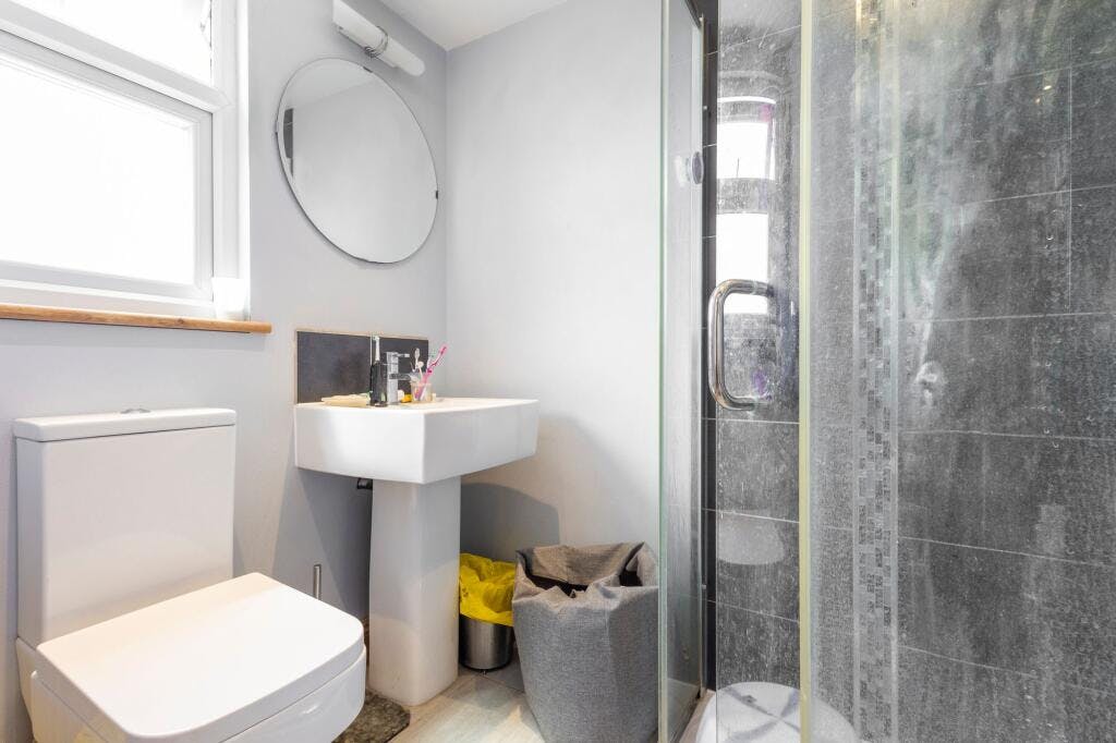 A full-width loft conversion houses a generously sized fifth bedroom, with great ceiling height and versatility—ideal as a principal suite, creative studio, or teenager’s retreat. A landing storage area or potential dressing nook adds further practicality.