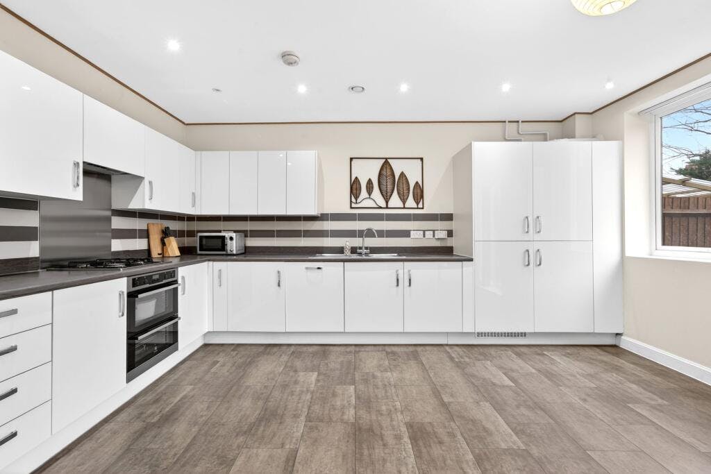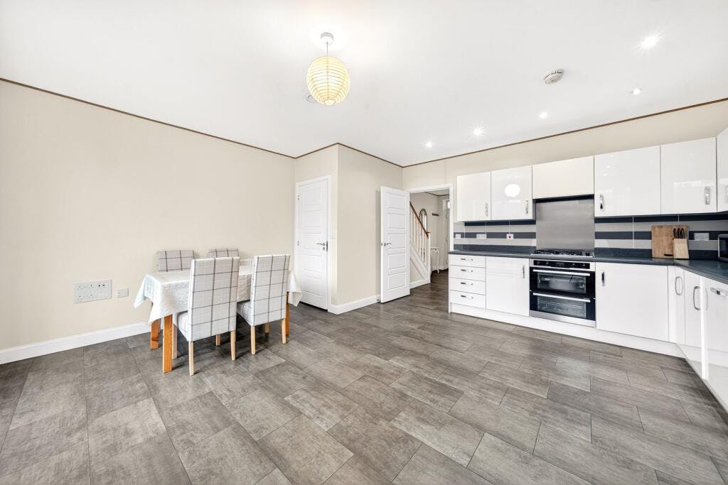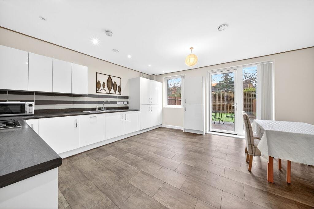 Bright and versatile living spaces are finished to a high standard throughout, centred around a generously sized contemporary kitchen/diner that opens directly onto a 39ft private garden. The garden features a patio area and low-maintenance artificial lawn, creating an ideal space for both everyday living and entertaining. Further benefits include excellent built-in storage, allocated off-street parking, central heating and double glazing.