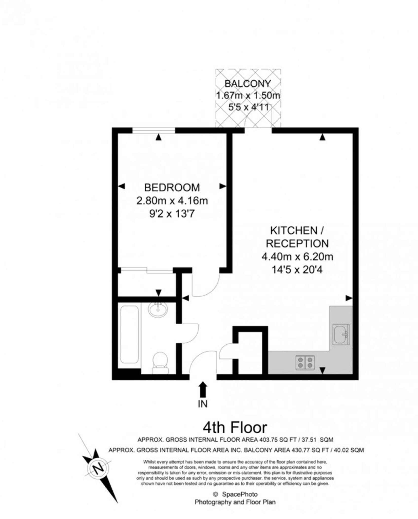 The property provides bright open-plan living with kitchen and access to a private balcony, a generous double bedroom and a modern bathroom. The layout is practical and proven for rental use, with good natural light and clear separation between living and sleeping space.