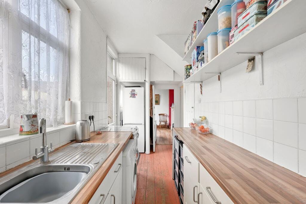 The property retains much of its original character and offers a practical layout, comprising an entrance hallway, a formal dining room, a spacious reception room, and a galley kitchen. Upstairs, there are two well-proportioned double bedrooms, a single bedroom, a shower room, and a separate WC.
