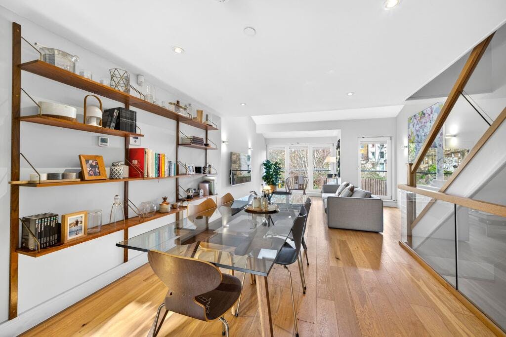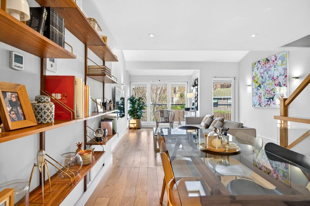 Situated within a secure, gated mews just off Ardleigh Road, this impressive 1,743 sq ft townhouse is arranged over four floors and offers modern living at its best. At the heart of the home is a generous open-plan kitchen, dining and reception space with clearly defined zones, high ceilings and a wonderful sense of volume, ideal for both everyday life and entertaining.