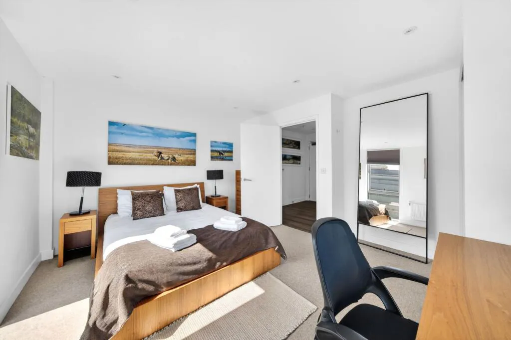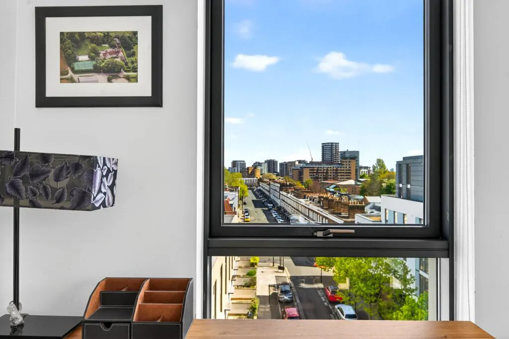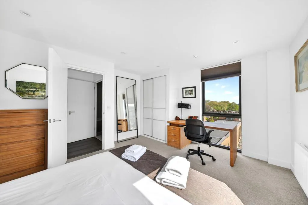 The bedroom is well-sized and enjoys an attractive outlook down Arlington Avenue, creating a pleasant and peaceful backdrop. This view also lends itself perfectly to a home working set-up, with an ideal spot for a desk where you can work comfortably while enjoying the natural light and open outlook. The bathroom is finished in a clean, modern style with quality fittings and a timeless design.