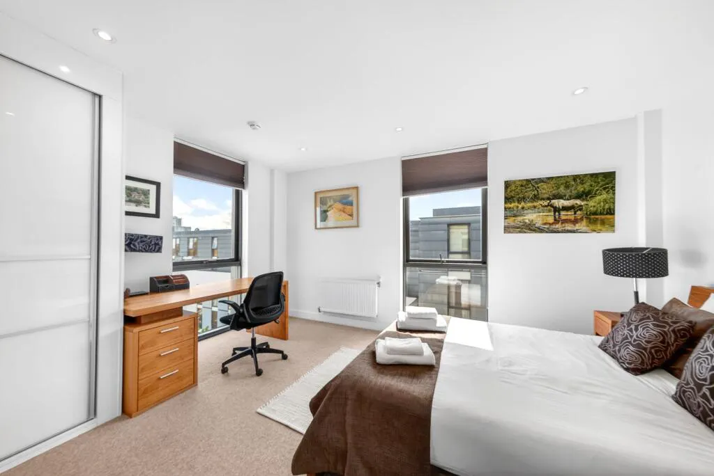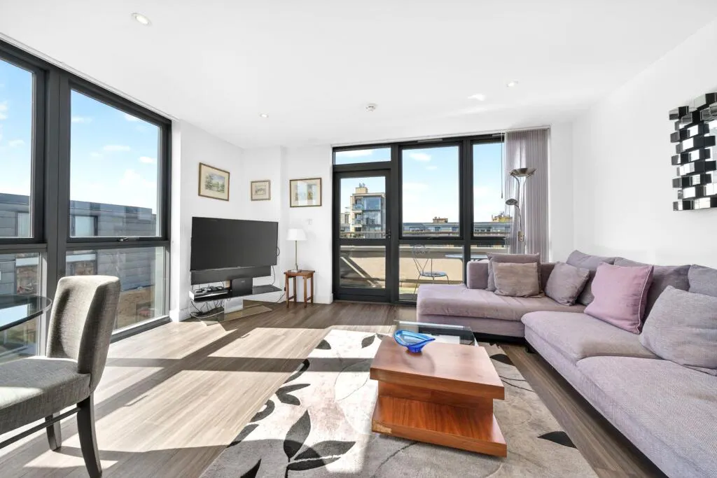 Set within a popular modern development in the heart of Angel, this beautifully arranged one-bedroom apartment offers approximately 592 sq ft of bright, contemporary living space. Positioned on the fifth floor, the property has been thoughtfully designed to make the most of its proportions, with a particularly impressive dual-aspect open-plan reception room that fills the apartment with natural light throughout the day and opens onto a private balcony.