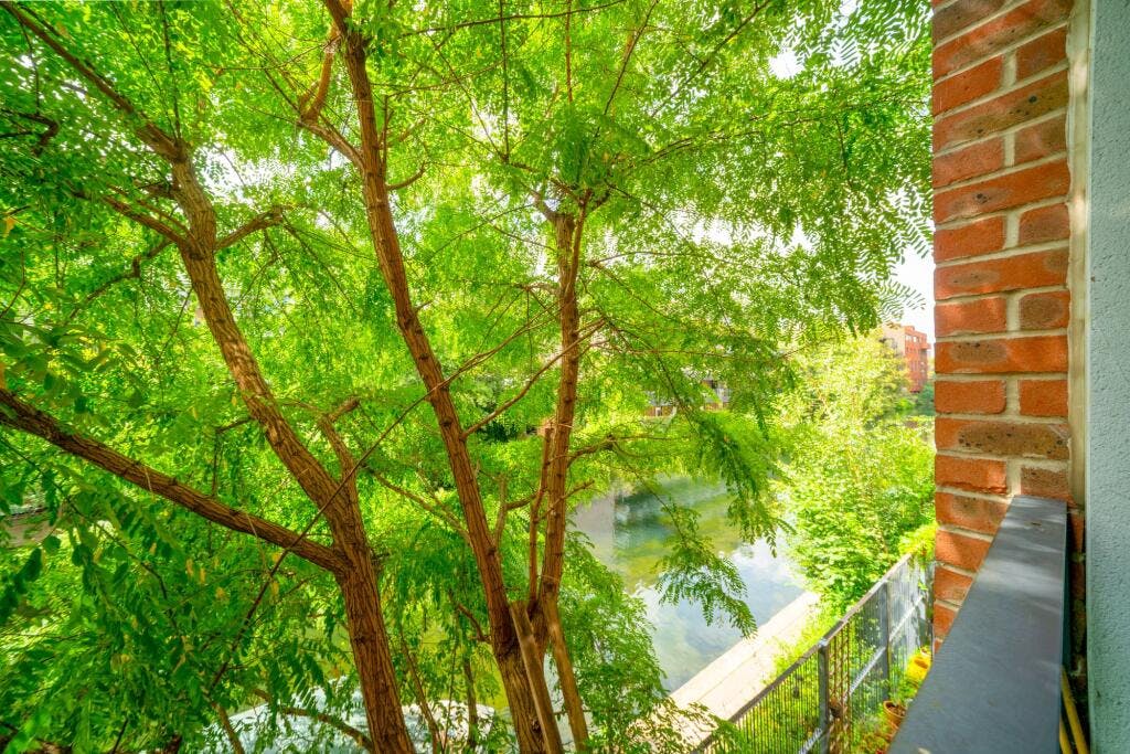 “One of the things we’ve loved most about living here is the abundance of natural light thanks to full-height windows in every room. The views over the canal are particularly special, especially when the light dances off the water in the mornings and evenings. The centrally positioned balcony, accessible from both the living area and the main bedroom, has been our go-to spot for a quiet morning coffee or a relaxed evening drink. There’s also a strong sense of community in the building, everyone’s friendly, and neighbours are always willing to lend a hand or take in a parcel.”