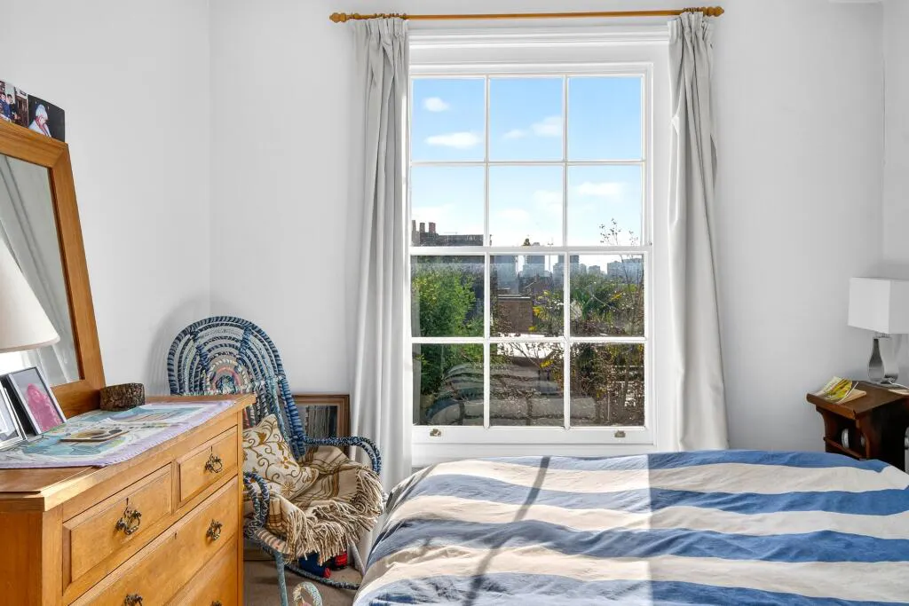 Set within the historic Benyon Arms, a charming former public house dating back to the mid-19th century and later converted into residential apartments, this wonderfully bright two-bedroom apartment at 155 De Beauvoir Road offers spacious accommodation, an excellent layout, and far-reaching views. Large windows flood the property with natural light, while high ceilings and generous proportions create an impressive sense of space throughout.