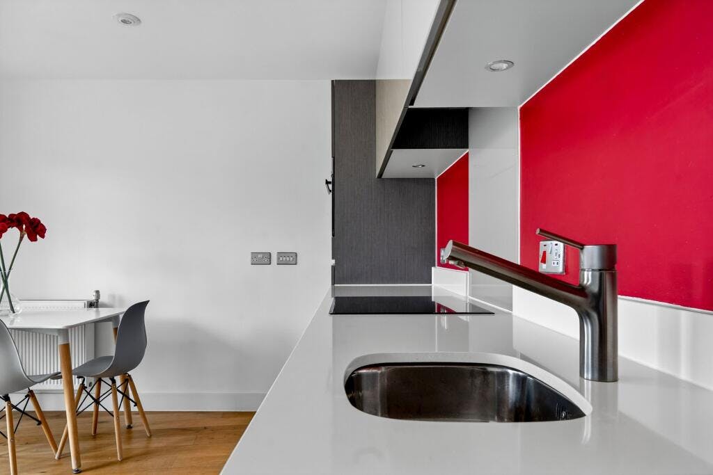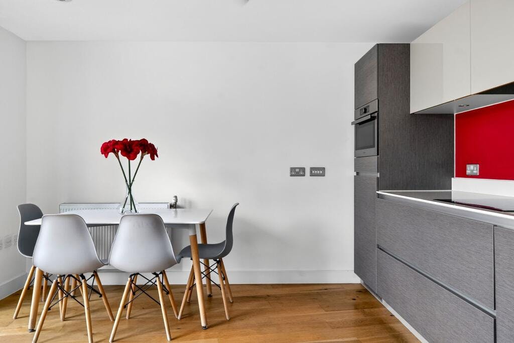 Set within a highly regarded modern development on Packington Street, this first-floor one-bedroom apartment offers stylish, low-maintenance living in the heart of Islington. The bright open-plan reception features full-height glazing, ensuring excellent natural light throughout the day. A sleek, fully fitted kitchen with integrated appliances flows into the living area, which opens onto a private south-west-facing balcony—ideal for afternoon sun and relaxed evenings.