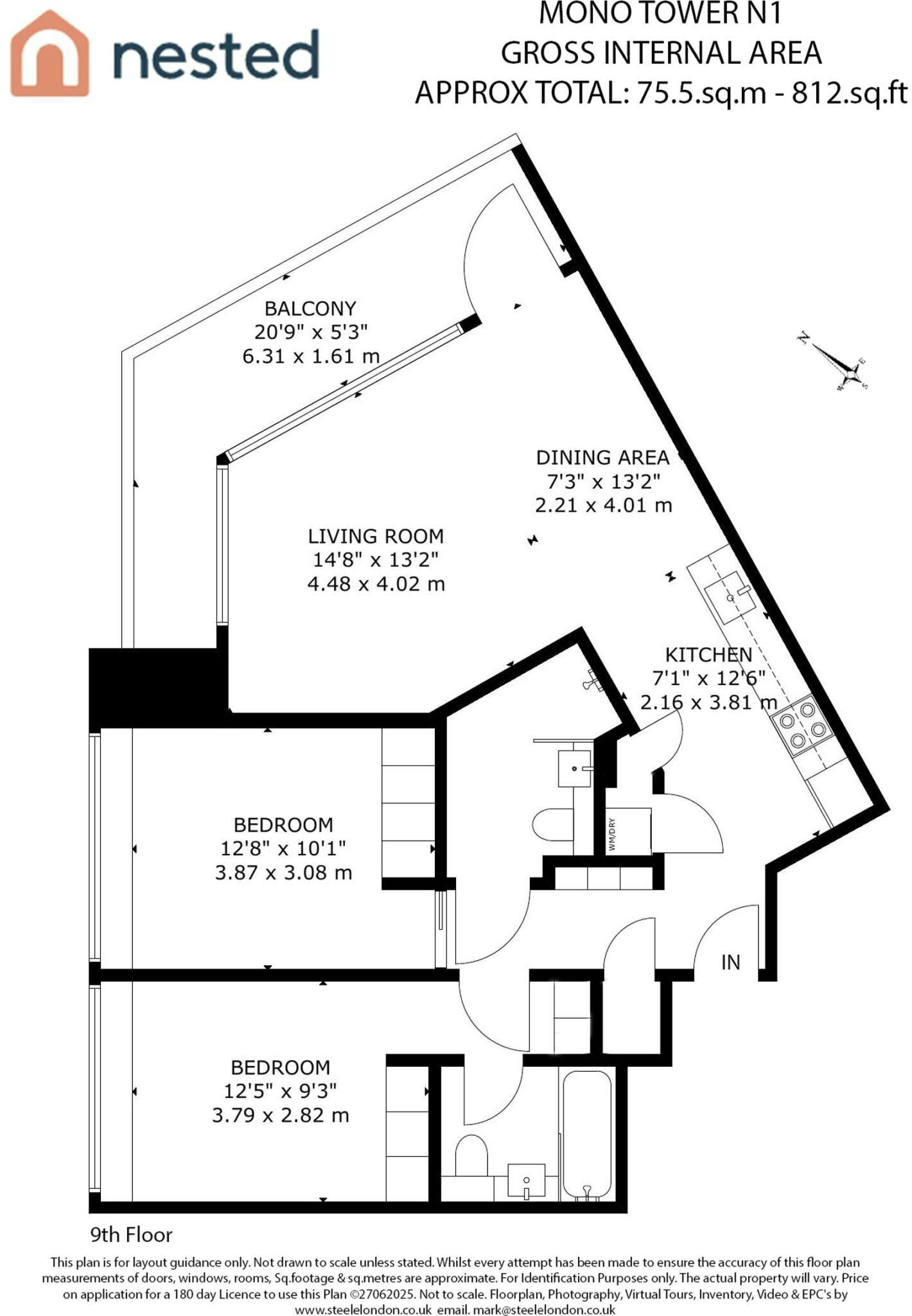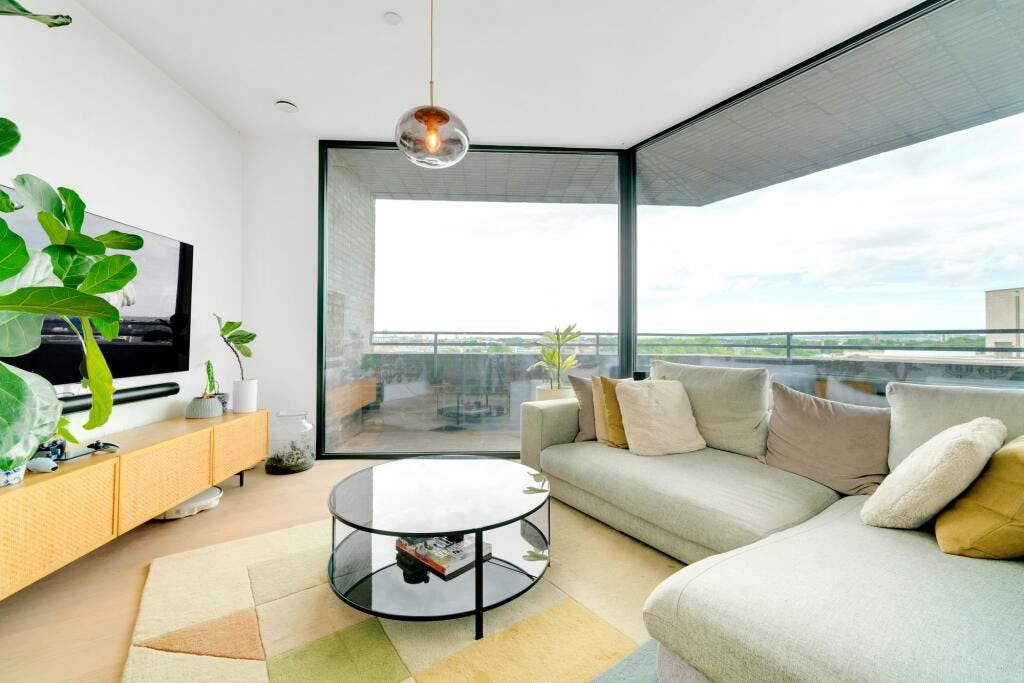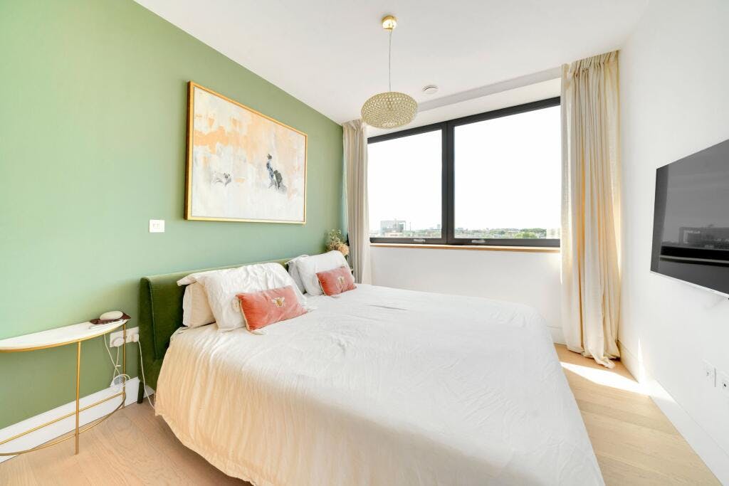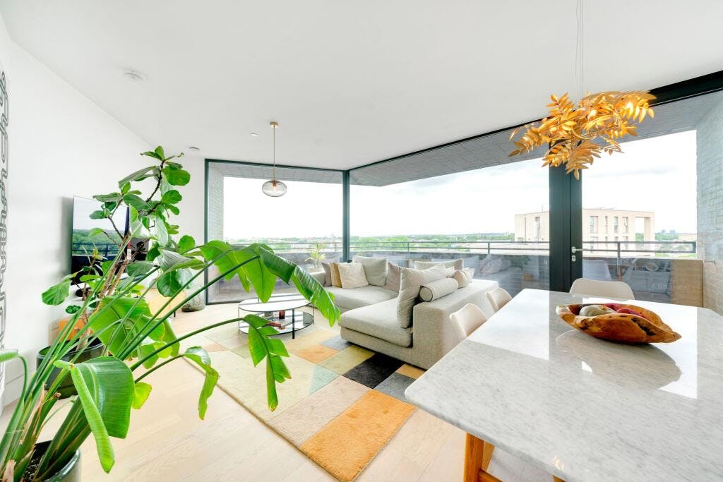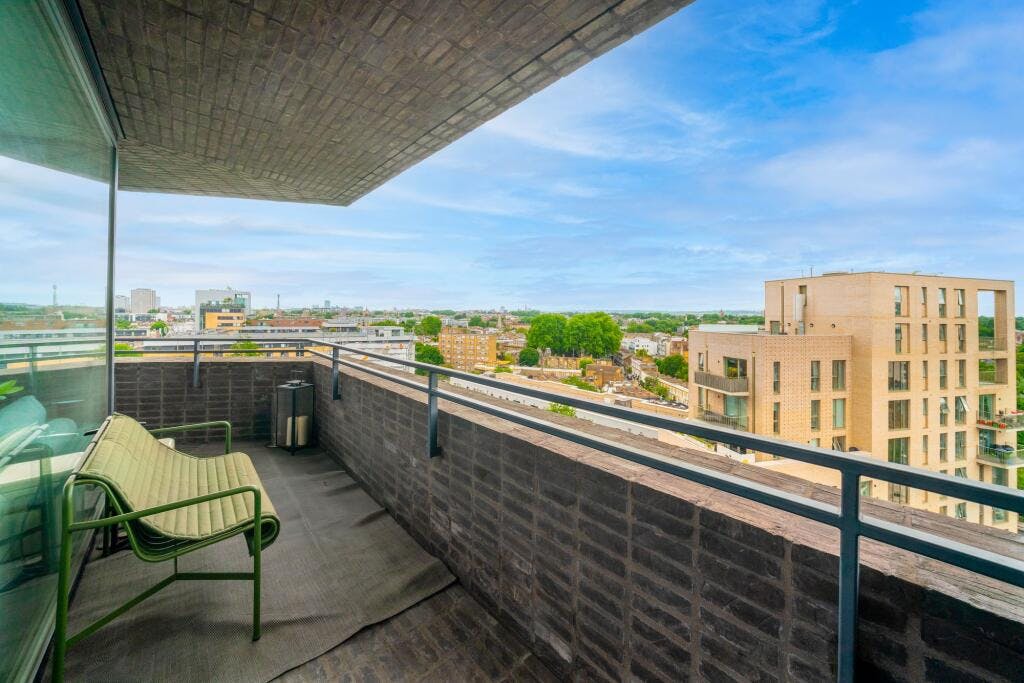 Situated on the 9th floor of a landmark development at the top of Shoreditch Park, this stunning two-bedroom, two-bathroom flat offers 812 sq ft of thoughtfully designed living space.