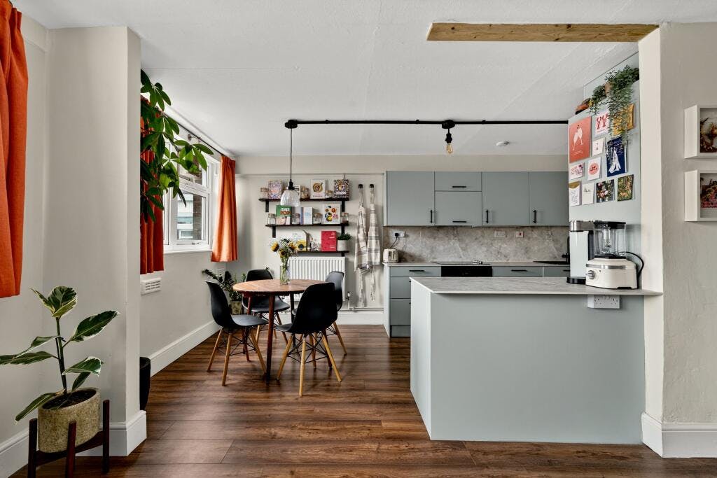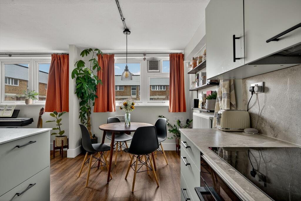 We love how spacious and light the flat feels, with an abundance of storage throughout, and a wide balcony that catches the evening sun perfectly. Since refurbishing, everything feels fresh and considered; the new kitchen, bathroom, and flooring have really transformed the space. But what truly makes it special is the sense of community. The Estate is wonderfully close knit, with everyone looking out for each other and a genuine neighbourhood spirit. We have active WhatsApp groups and regular get-togethers, from summer lunches to panto trips, which make it feel like a little village in the city.
