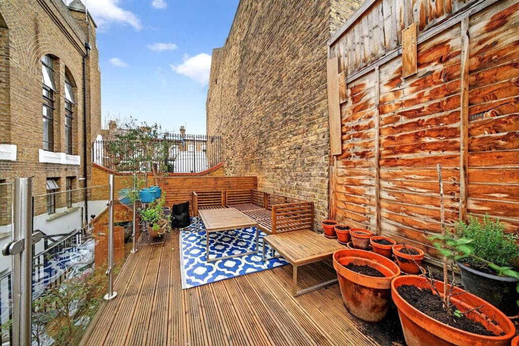 Access to both the private patio and the top terrace is from the reception room, offering wonderful outside space and different seating areas.