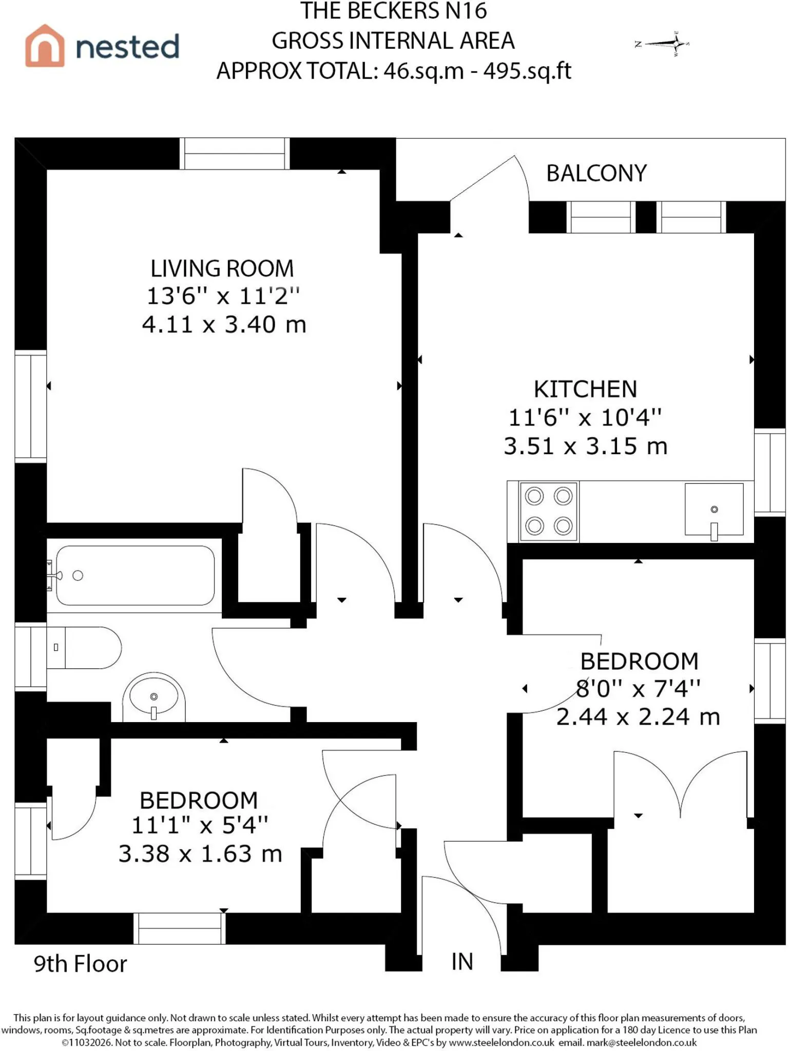 The bathroom is well proportioned for the size of the flat and has a full-length bath.