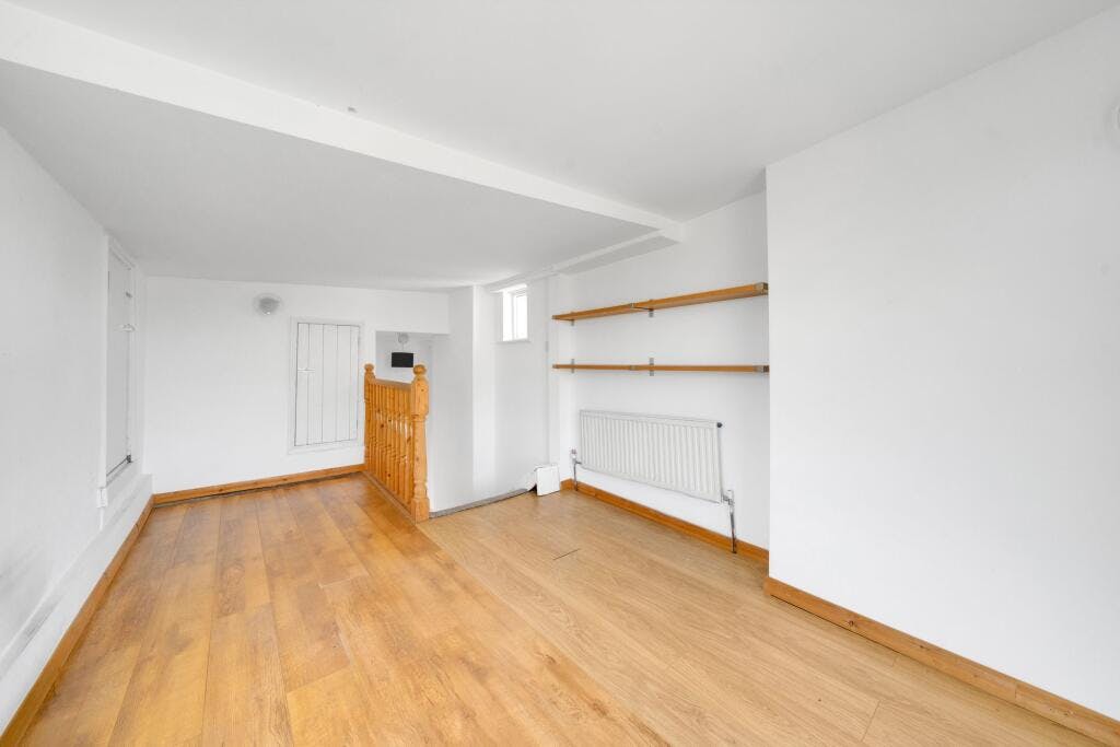 Occupying the second floor and third floors, the property offers a bright and spacious reception room, a separate fitted kitchen, and two well-sized double bedrooms, complemented by a modern bathroom. An additional upper level provides a highly versatile space, ideal as a home office, studio, or guest area, with the added benefit of extensive storage.