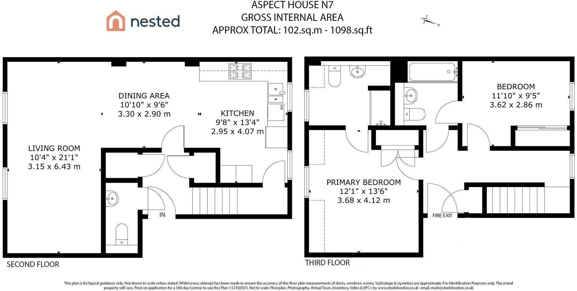A spacious two-bedroom apartment of approximately 1,100 sq ft, situated on a quiet residential street in Holloway.