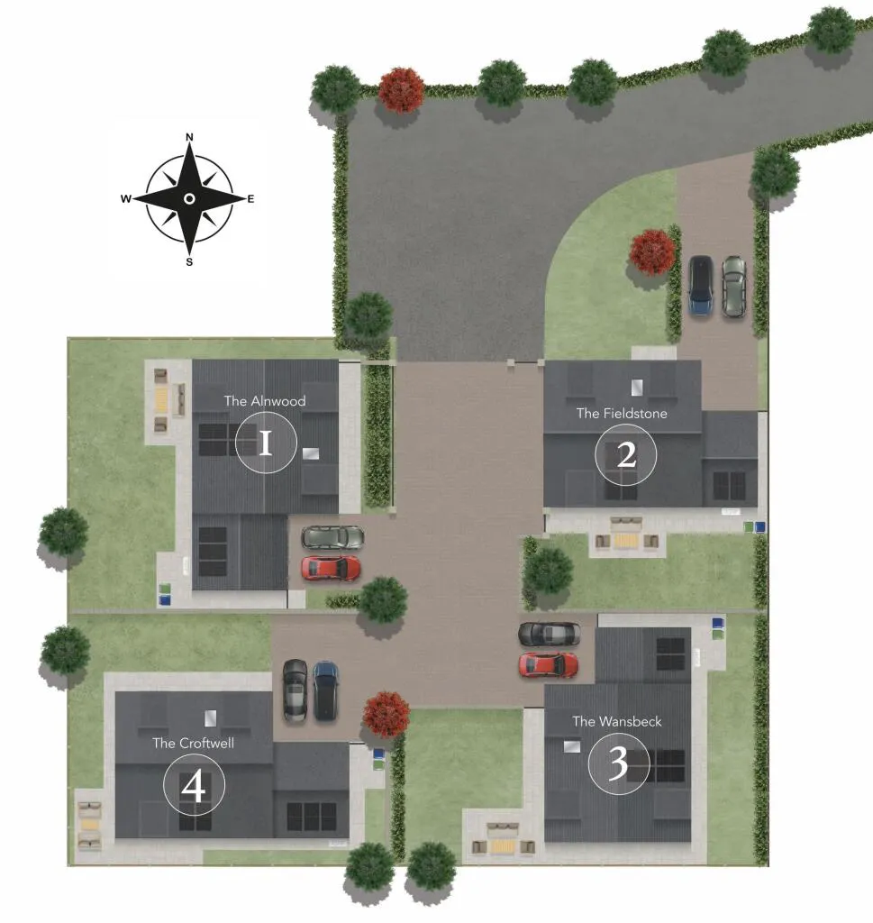 Each home benefits from a spacious landscaped and turfed private garden with a paved patio and stunning countryside views. Garages include Anderson EV charging points and generous driveway parking. Alongside this, energy-efficient features such as Veridian in-line solar panels and air source heat pumps ensure sustainable and cost-effective living contributing to an exceptional EPC A rating.