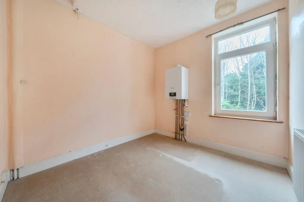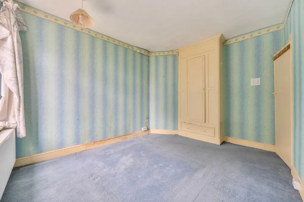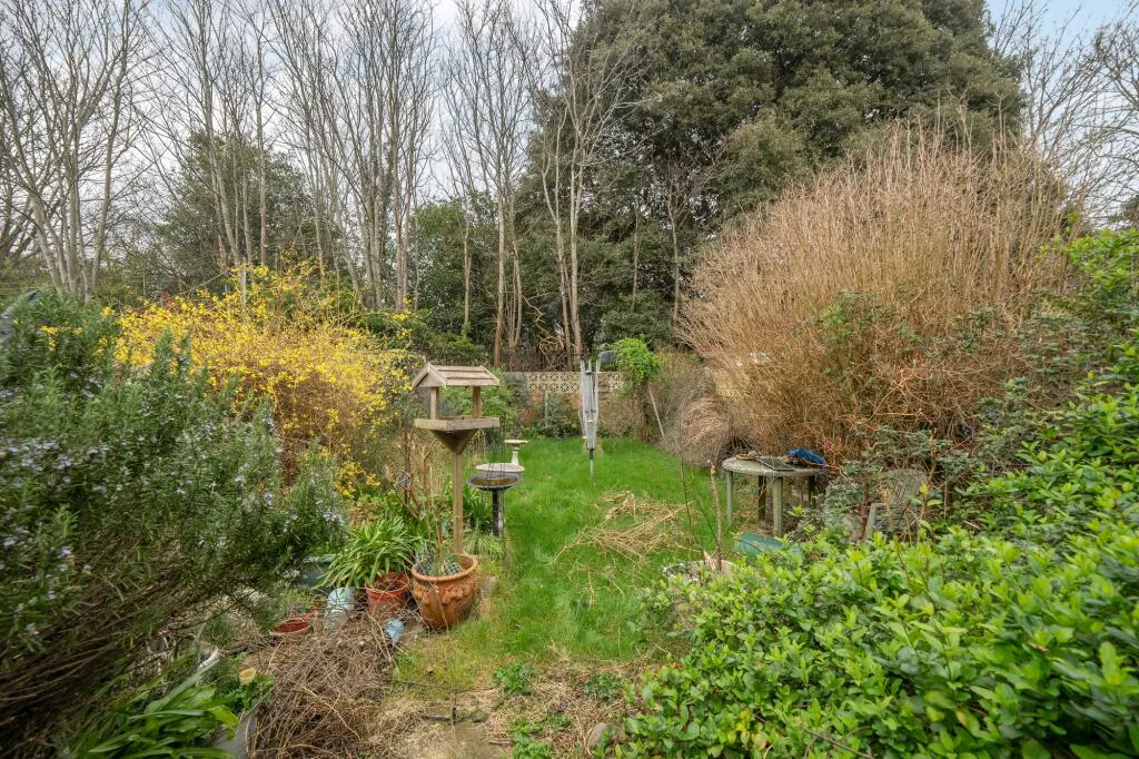 One of the standout features of this end-of-terrace home is the enclosed rear garden, which offers a sense of privacy and tranquility as it overlooks a beautiful wooded area. This green backdrop is a rare luxury for the area and provides a wonderful space for landscaping and outdoor enjoyment.