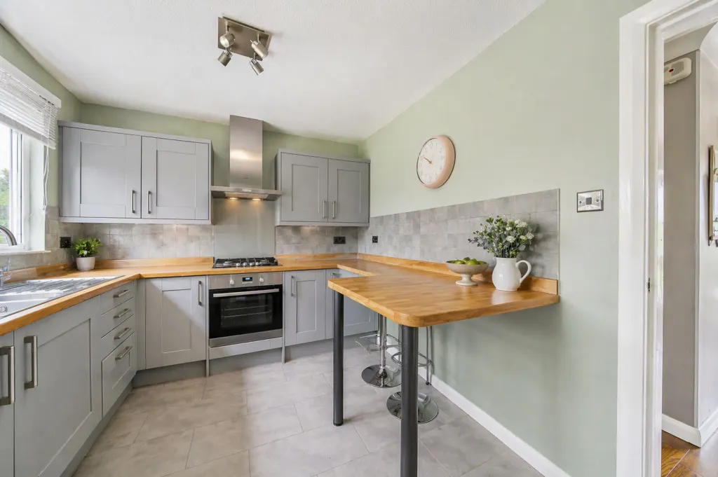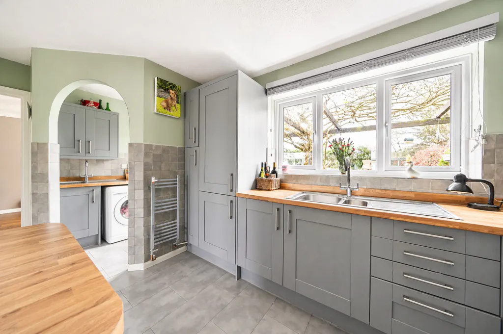 From the moment you step inside, you’re welcomed by a spacious entrance hall leading to two generous reception rooms, ideal for both relaxed family living and stylish entertaining. The heart of the home is the modern Shaker-style kitchen, complemented by a separate utility room that provides excellent storage and practicality for busy households.