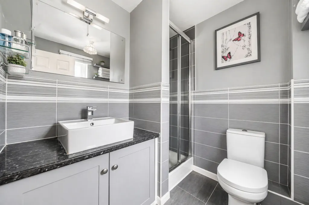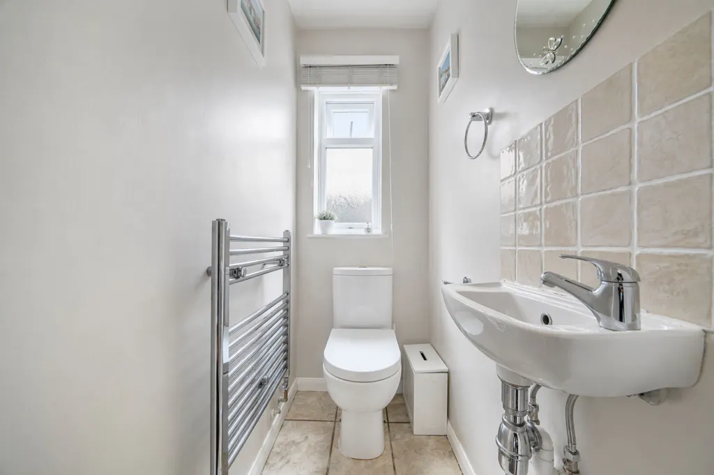 Upstairs, the property offers four well-proportioned bedrooms, including a superb principal bedroom with its own en-suite shower room, alongside a contemporary family bathroom. A convenient downstairs cloakroom adds further practicality for everyday living.