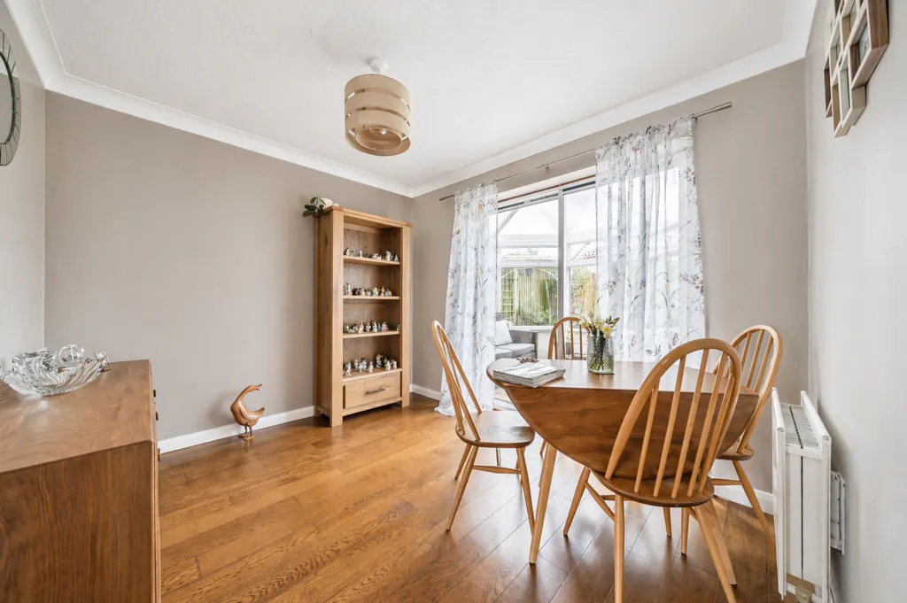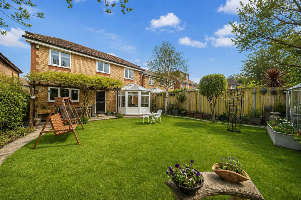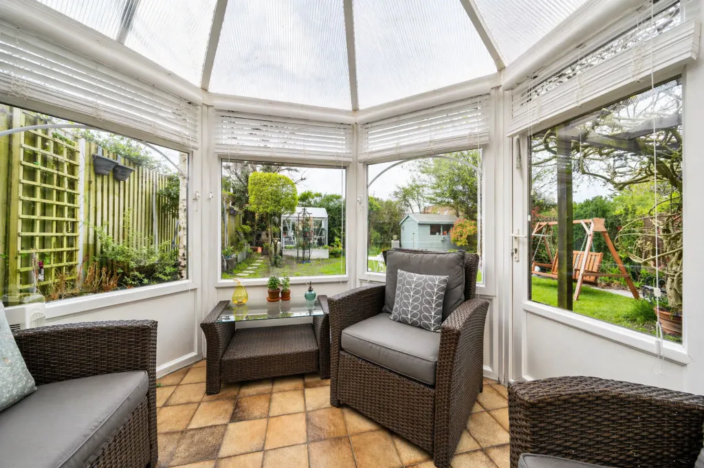 A bright and airy conservatory extends the living space further, creating a versatile area that works perfectly as a second lounge, playroom, or home office, all enjoying views over the garden.