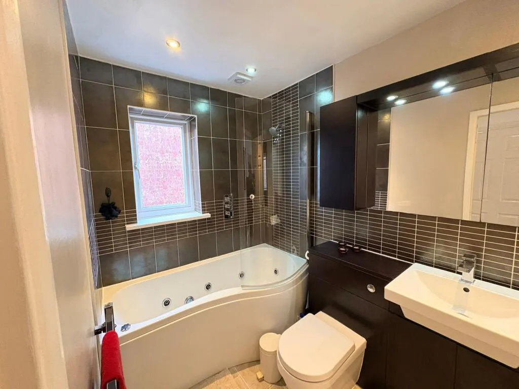 Upstairs, there are four well proportioned bedrooms, including a master suite that features a modern en suite shower room for added privacy and comfort. The remaining bedrooms are serviced by a stylish family bathroom, ensuring plenty of space for a growing family or visiting guests.
