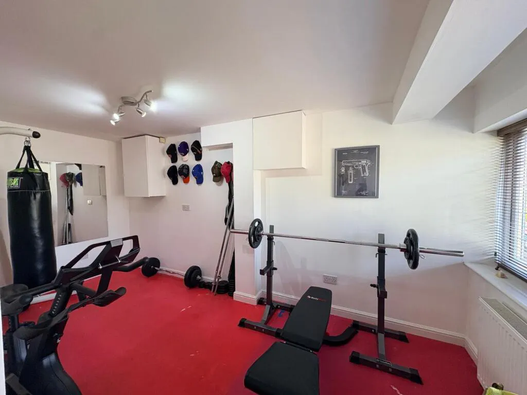 Upon entering the property, you are welcomed by a spacious entrance hall that leads to a versatile ground floor study or playroom (perfect for those working from home or seeking a dedicated area for children’s activities. Currently the room is used as a gym however there is laminated wooden flooring under the gym matting).