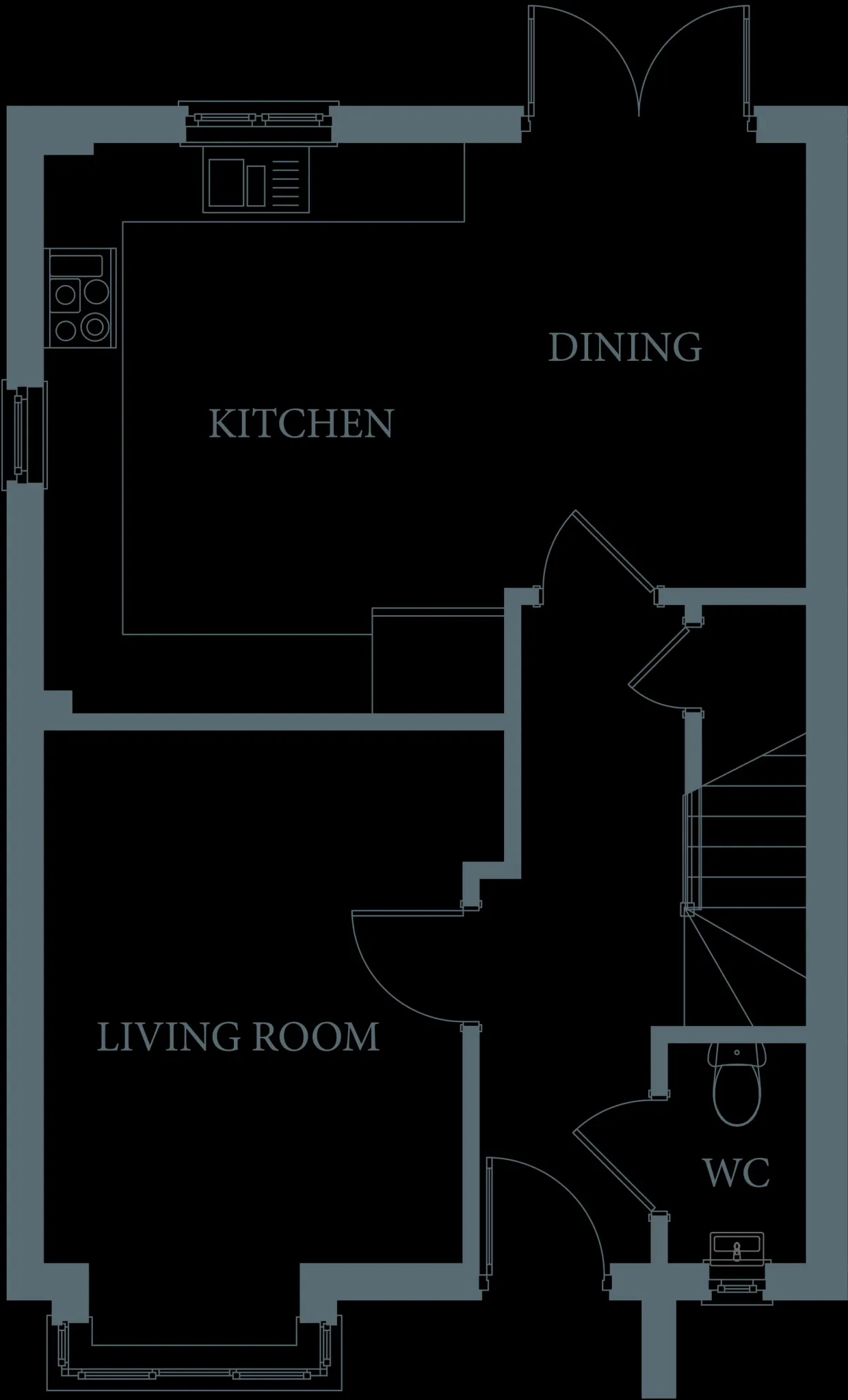 On the ground floor, The Dot offers an expansive open-plan kitchen and dining area that serves as the heart of the home. The contemporary kitchen is fully fitted with high-quality appliances, ample storage, and workspace, making it ideal for cooking, entertaining, or enjoying family meals. French doors lead out to the rear patio, creating a seamless connection between indoor and outdoor living—perfect for al fresco dining or relaxing in the fresh coastal air. The open layout ensures that the kitchen and dining area flow naturally, offering a bright and welcoming space.