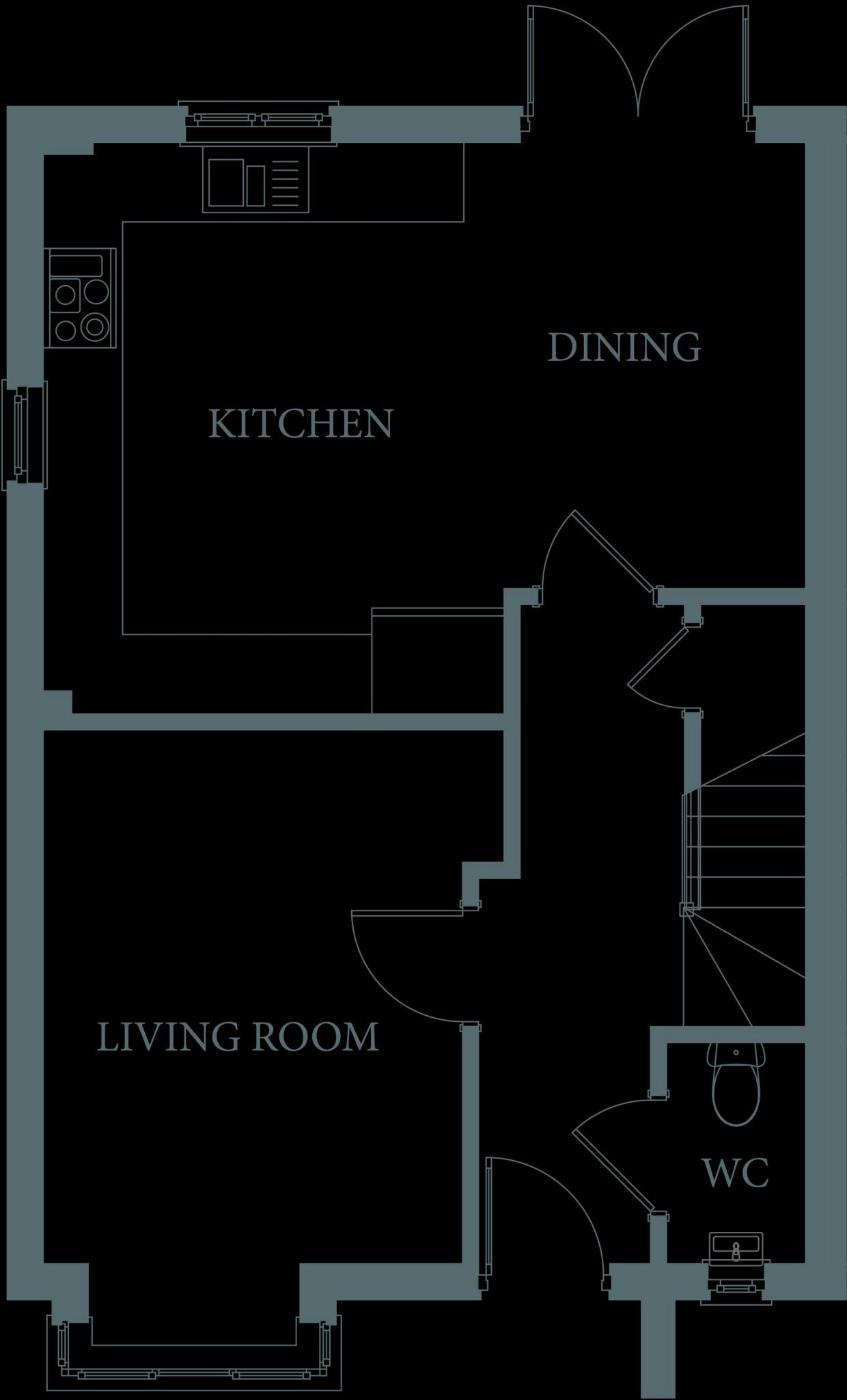 On the ground floor, The Dot offers an expansive open-plan kitchen and dining area that serves as the heart of the home. The contemporary kitchen is fully fitted with high-quality appliances, ample storage, and workspace, making it ideal for cooking, entertaining, or enjoying family meals. French doors lead out to the rear patio, creating a seamless connection between indoor and outdoor living—perfect for al fresco dining or relaxing in the fresh coastal air. The open layout ensures that the kitchen and dining area flow naturally, offering a bright and welcoming space.