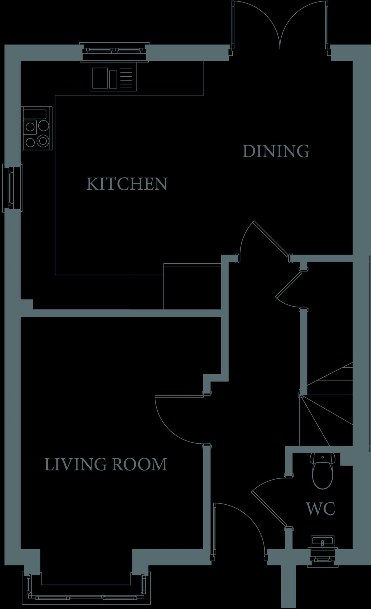 The ground floor of The Beca boasts a spacious, open-plan kitchen and dining area that serves as the heart of the home. The kitchen is fully fitted with high-quality appliances and offers a range of customisable finishes, allowing you to personalise it to your taste. French doors from the dining area open out onto the rear patio, seamlessly connecting the indoor and outdoor spaces—ideal for entertaining, relaxing, or enjoying a family meal in the fresh air. The well-thought-out layout ensures that the open-plan space is bright and welcoming, perfect for day-to-day family living.