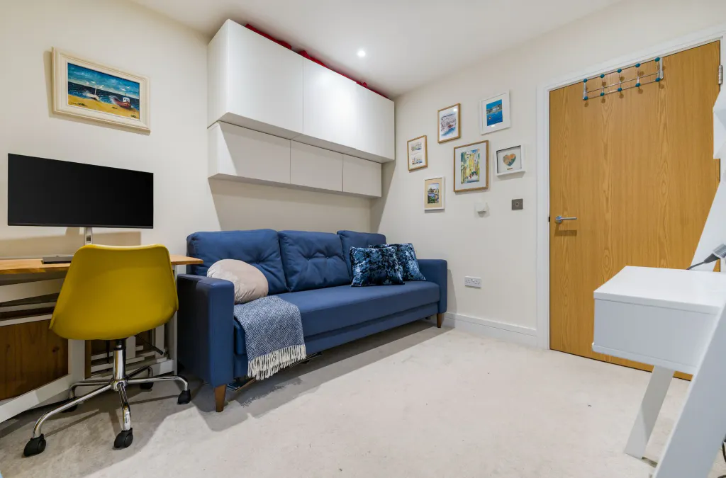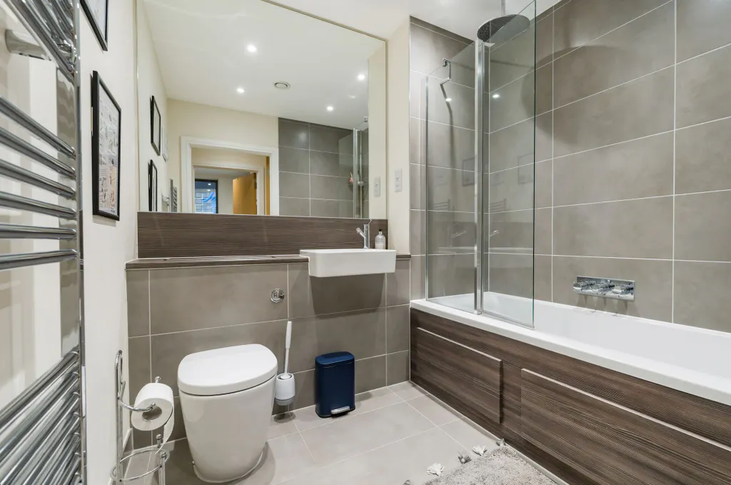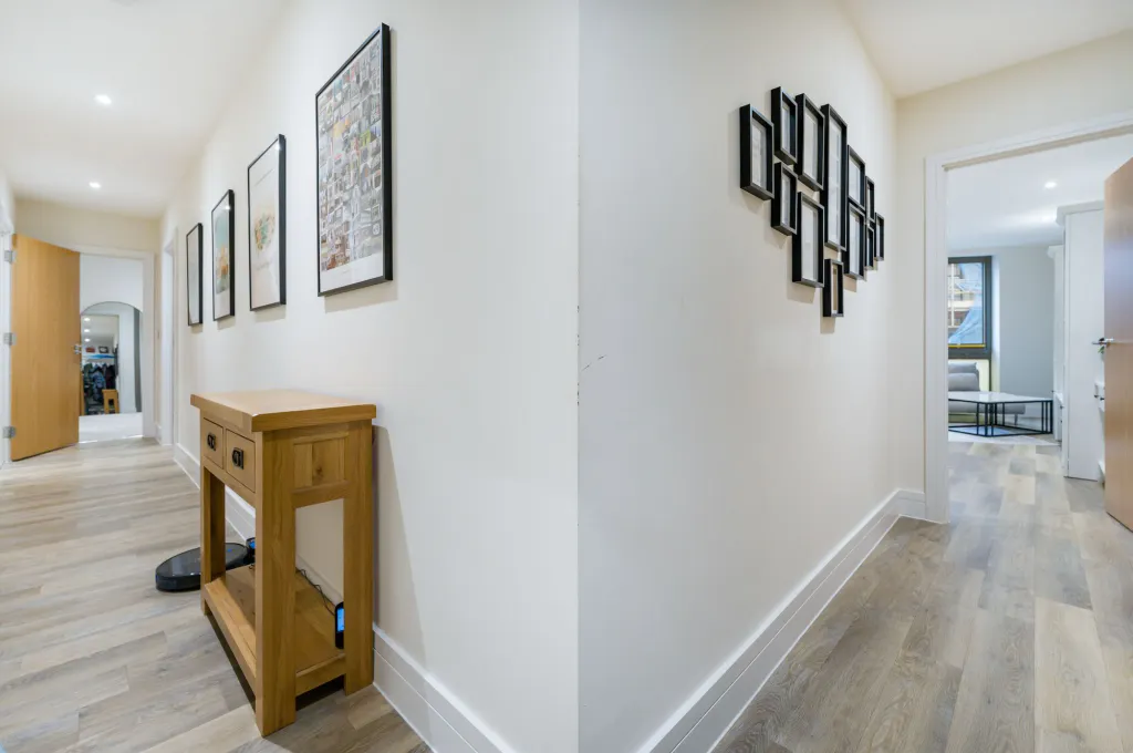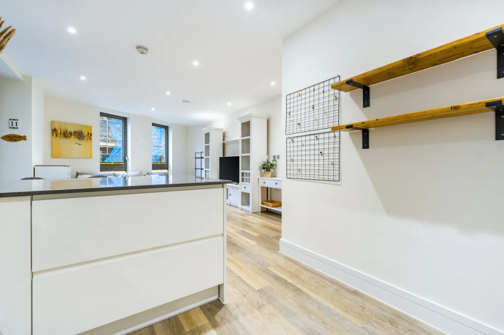 The kitchen is neatly designed and practical, with clean lines and good storage. Both bedrooms are comfortable doubles, well proportioned and calm in feel, with the principal bedroom offering particularly good scale. Two contemporary bathrooms and further built-in storage complete the accommodation. This property is offered Chain Free.