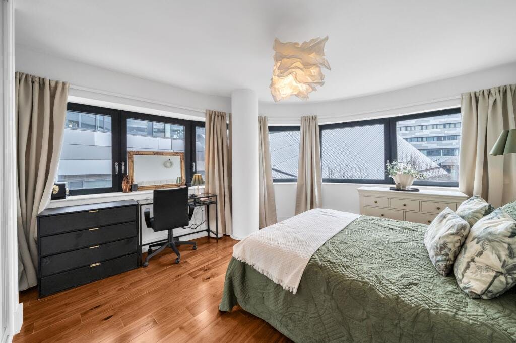 NOT TO BE MISSED! STUNNING APARTMENT in STYLISH GREENWICH DEVELOPMENT offered with PARKING! Superbly situated close to TRANSPORT LINKS and AMENITIES, this fantastic property offers WELL PLANNED LIVING SPACE with DELIGHTFUL PRIVATE TERRACE and STYLISH INTERIORS throughout - the perfect balance between comfort and convenience in a thriving residential location. Accommodation comprises entrance hall with inbuilt storage, leading into the generous open plan reception/kitchen/diner, flooded with natural light and providing ample space for relaxing, entertaining and dining. The kitchen area comprises a sleek range of matching high gloss wall and base units with work surfaces, incorporating inset sink unit, induction hob with overhead extractor, electric oven, and further space for appliances. There are two well proportioned bedrooms - with feature curved windows to the luxurious principal bedroom- plus an elegantly tiled family bathroom with modern white three piece suite.