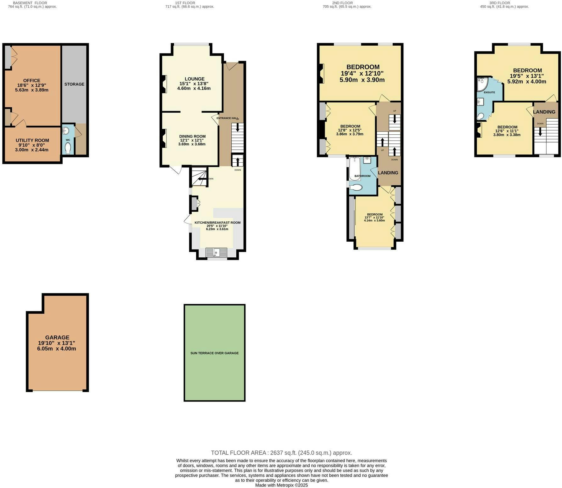 Upstairs, the property provides five well-proportioned double bedrooms arranged over three floors, each benefitting from attractive views (some with far-reaching vistas across the surrounding area). The bedrooms are complemented by two stylish family bathrooms, both finished to a high standard.