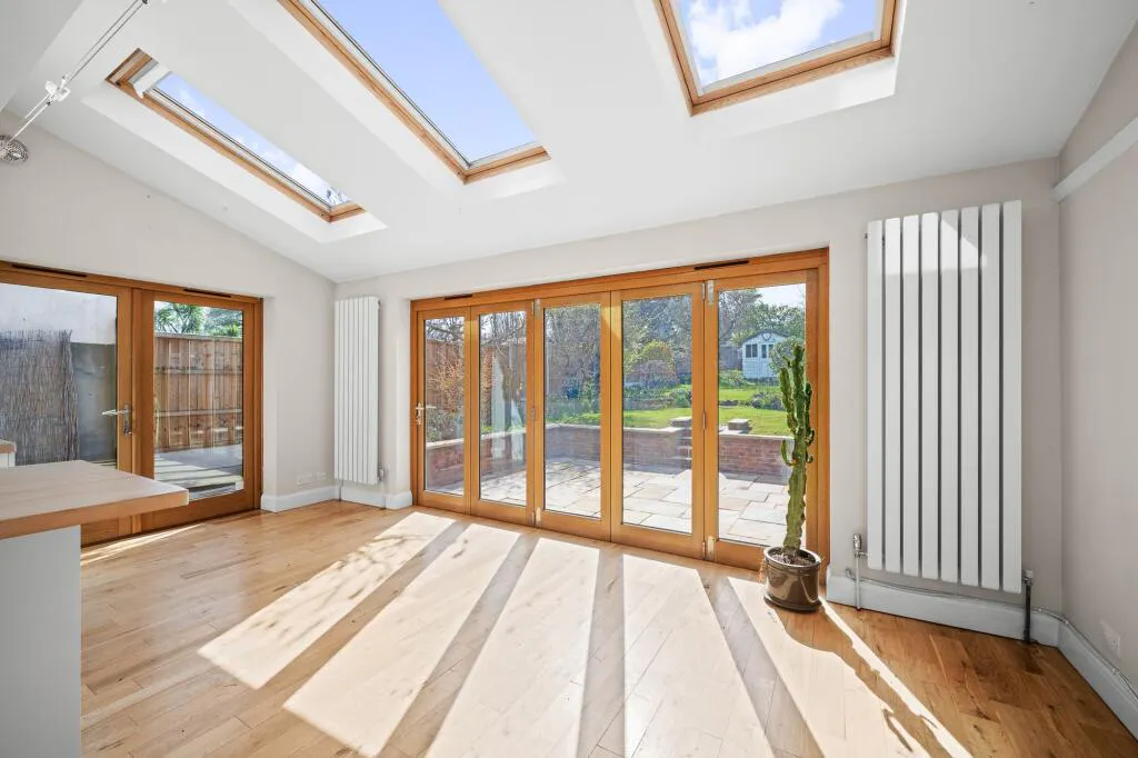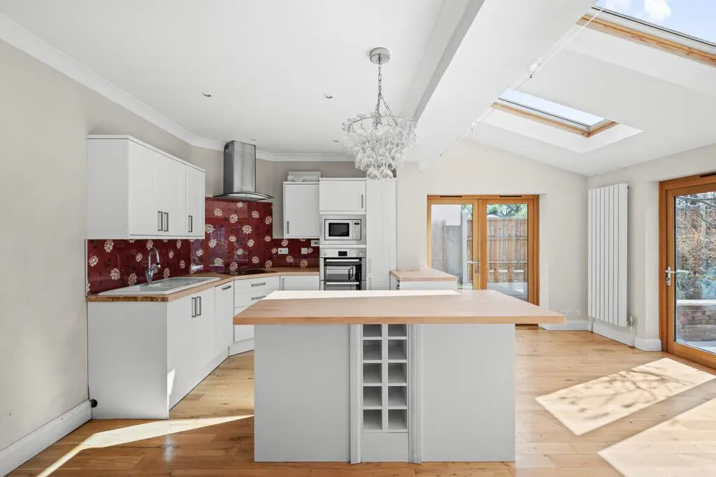 Accommodation comprises entrance hall with access to guest WC, leading into the reception room with front aspect bay and ample space for relaxing and entertaining. To the rear of the property, the extended open plan kitchen/diner enjoys dual aspect, with bi-folding doors spilling out onto the garden. The kitchen area comprises a range of matching wall and base units with work surfaces and central island, incorporating inset sink unit, electric hob with overhead extractor, wall mounted oven, and further space for appliances. To the first floor, there are three well proportioned bedrooms – two doubles and a third single/study – plus a family bathroom and adjacent WC.