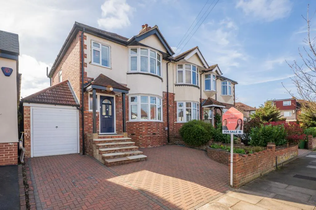 Well proportioned three bedroom extended semi detached house with delightful mature private garden, garage and off street parking, conveniently situated in a popular location close to transport links, schools and amenities. The property offers bright and spacious, extended accommodation with some additional scope to update and customise as desired – ideal for a growing family in this fantastic residential location. Features include an inviting front aspect reception room, well equipped extended kitchen/diner, first floor family bathroom/WC, ground floor WC, gas central heating, double glazing, inbuilt storage and no onward chain.