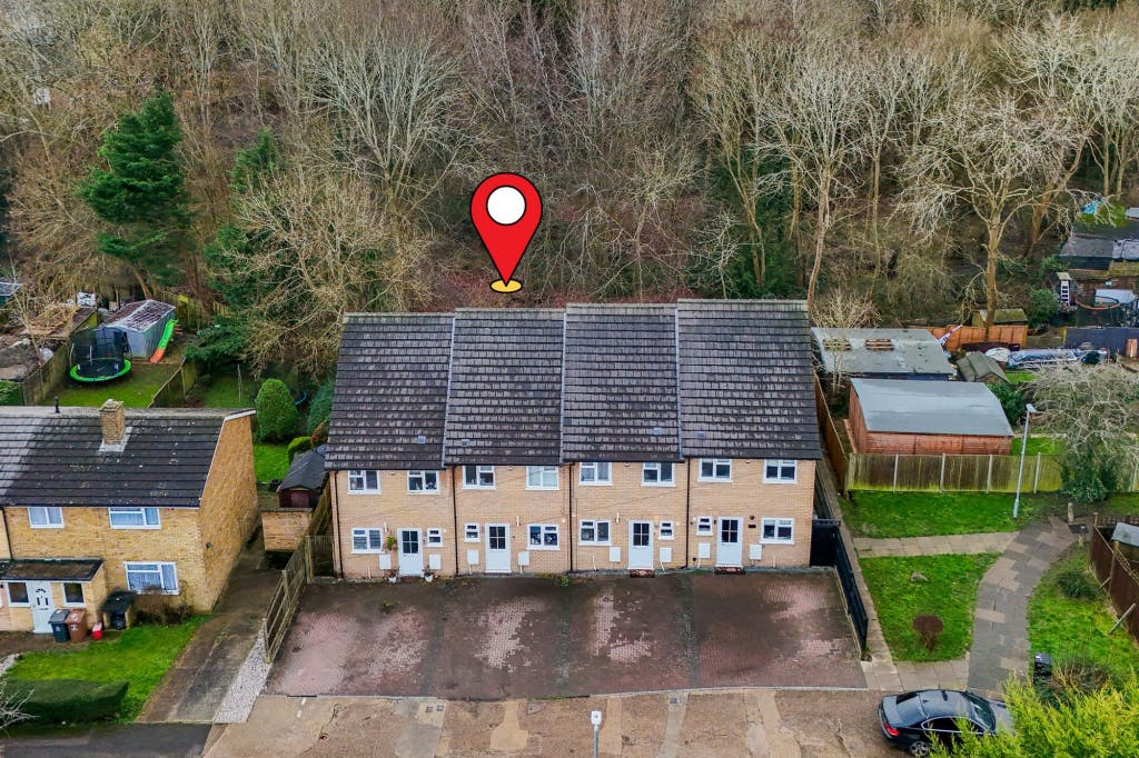 Outside, the property enjoys a private south-facing garden backing onto mature woodland, with side access and off-street parking for two vehicles.