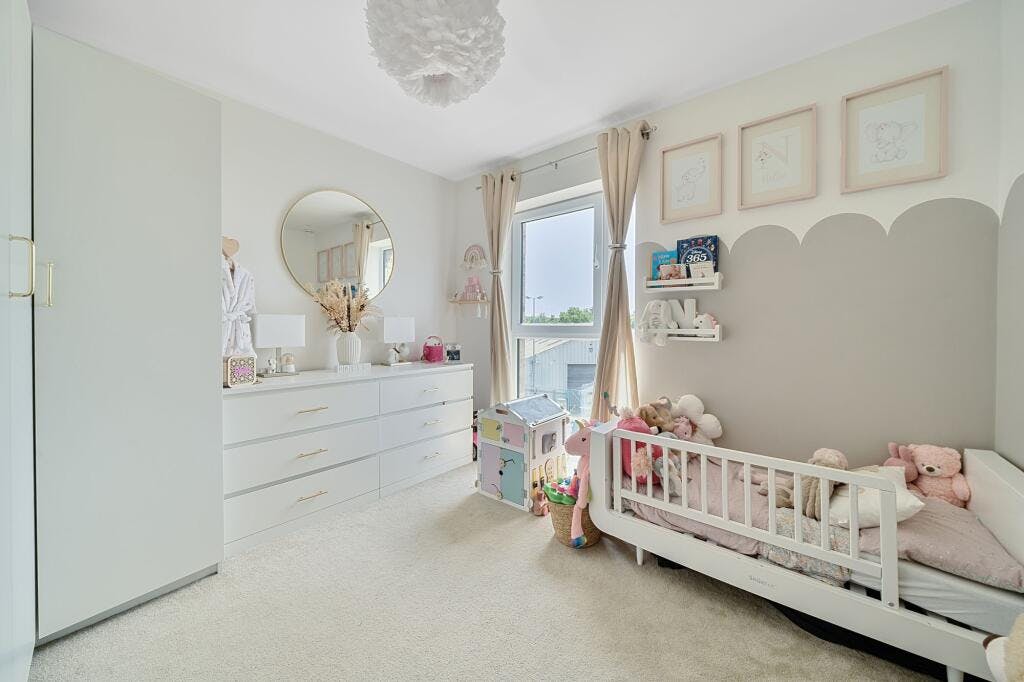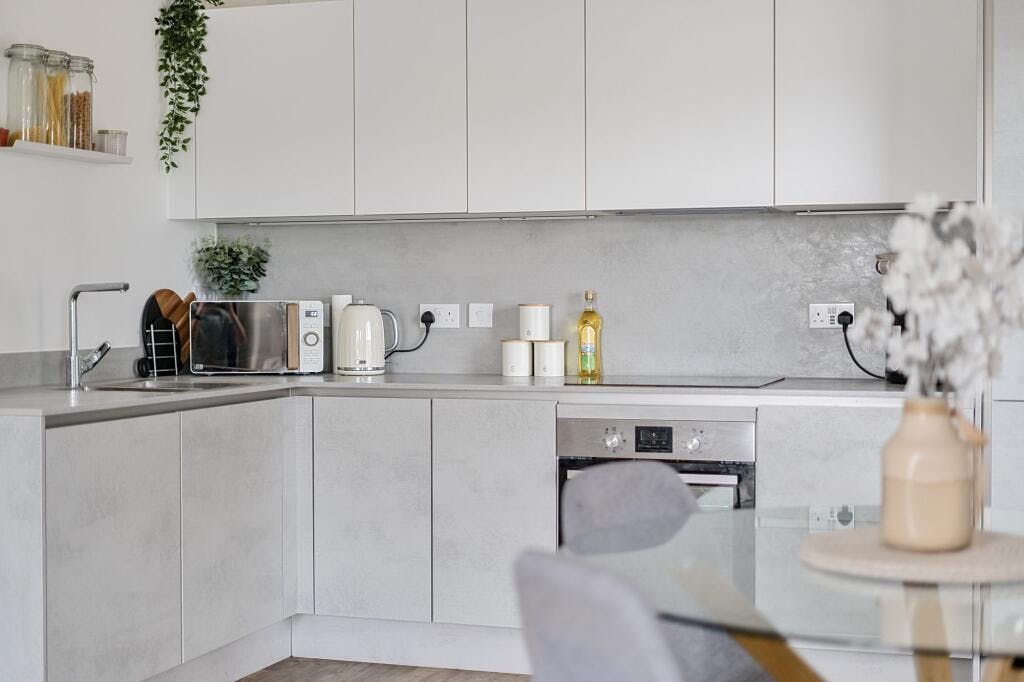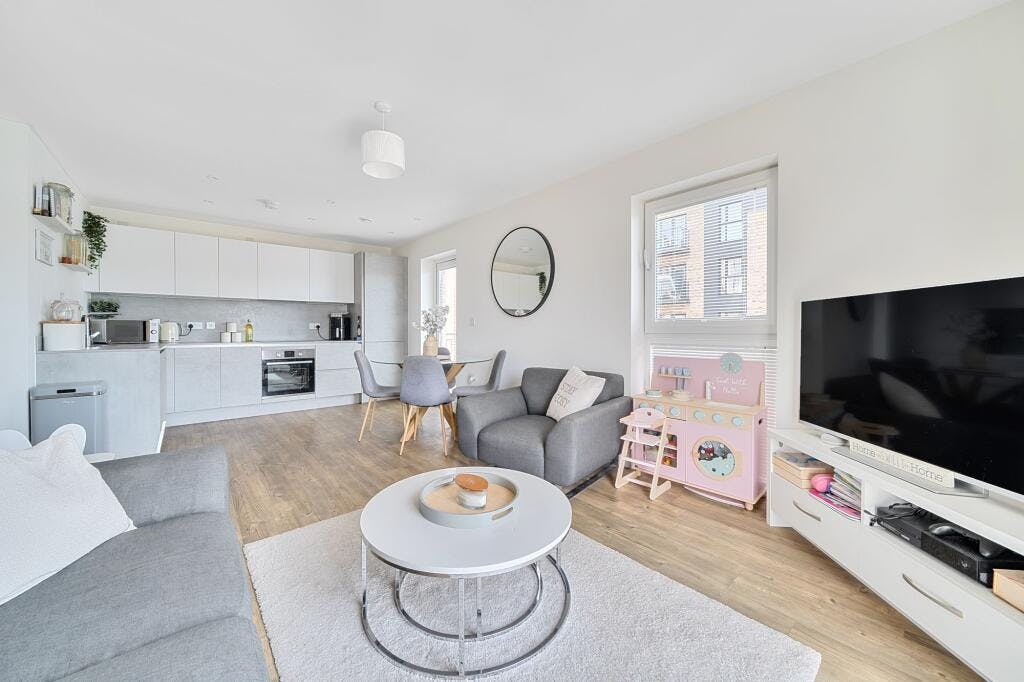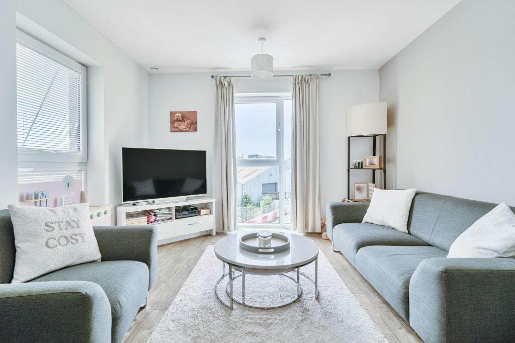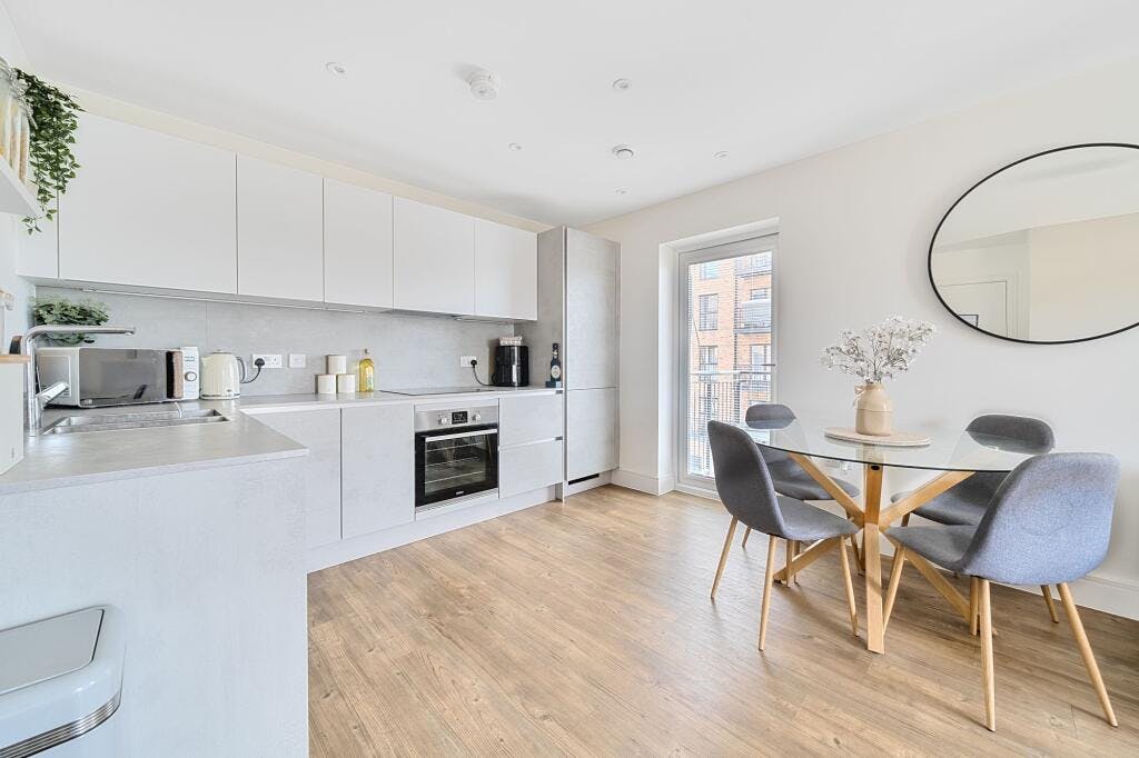 The heart of the home is the open-plan kitchen, lounge, and dining area—a light-filled space that’s perfect for both relaxing and entertaining. The contemporary kitchen comes fully fitted with integrated appliances including a fridge-freezer, dishwasher, and an electric oven with hob and extractor. Stylish finishes and smart layout make cooking a joy.
