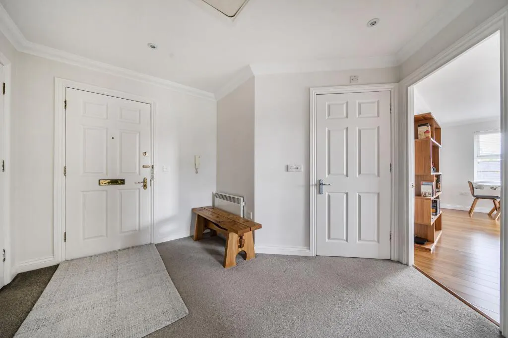 Located on the fourth floor and accessed via a secure communal entrance with lift and stair access, the apartment immediately feels calm and well kept. As you step inside, you’re greeted by a bright and generous entrance hall complete with loft access that sets the tone for the rest of the home. A large built-in storage cupboard adds everyday practicality that’s often missing in apartments like this.