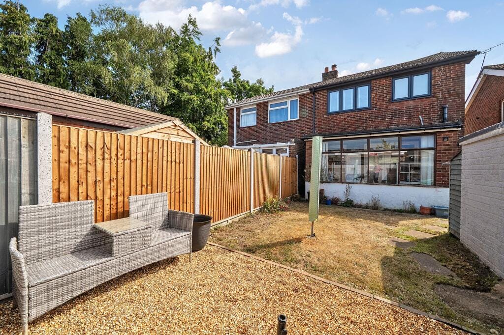Outside, the rear garden is low-maintenance and made for winding down, with a lawned area, gravelled seating space for al fresco dining, a detached garage with side access, and secure fencing all around. Off-road parking at the front handles three to four vehicles with ease.