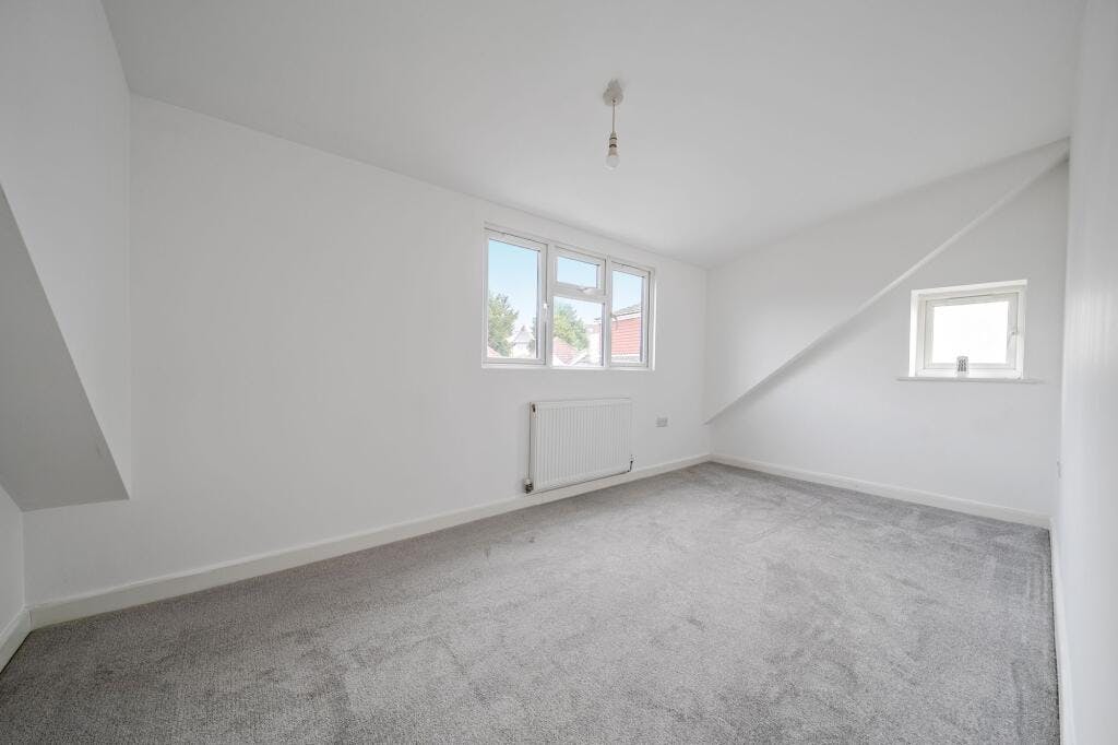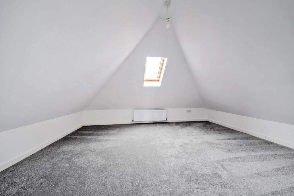 Upstairs, the principal bedroom overlooks the front of the property with a sleek Velux style window, letting in plenty of light. Two more double bedrooms sit to the rear, alongside a second modern bathroom with a double shower and contemporary fittings, ensuring there’s space for the whole family.
