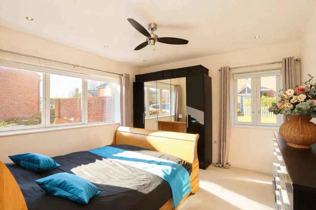 Internally, a thoughtful winged layout separates the bedrooms from the living space, enhancing both privacy and quiet. There are two well-proportioned double bedrooms served by a stylish family bathroom. The property also benefits from extensive loft storage (~600 sq ft), fully boarded, illuminated and easily walkable — a rare and highly practical addition, ideal for long-term, clutter-free living.