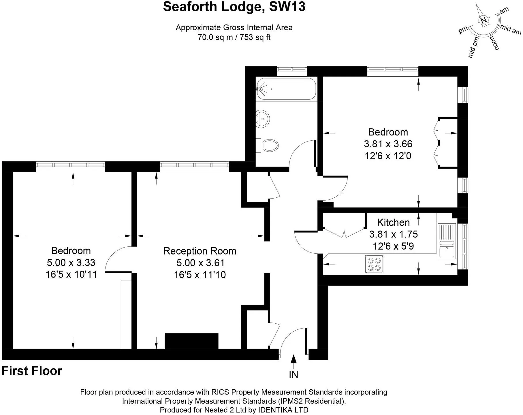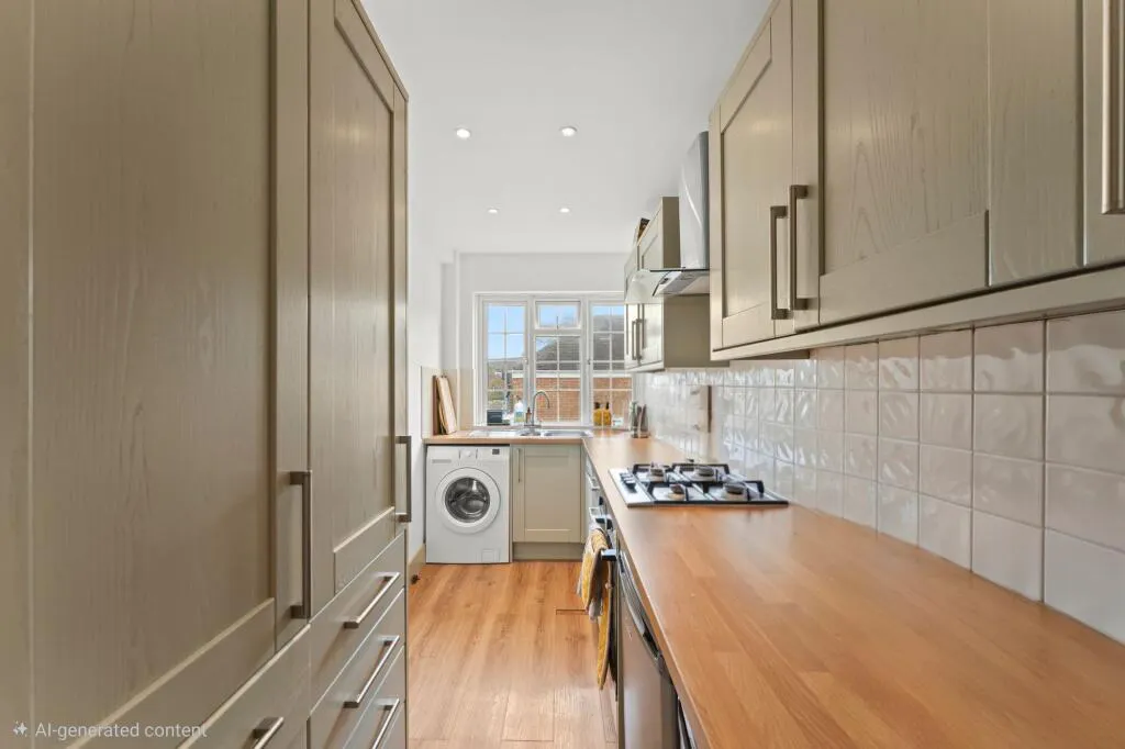 Beautifully presented throughout, the property features a generous, light-filled reception room, two well-proportioned double bedrooms with fitted storage, a modern kitchen and a sleek contemporary bathroom.