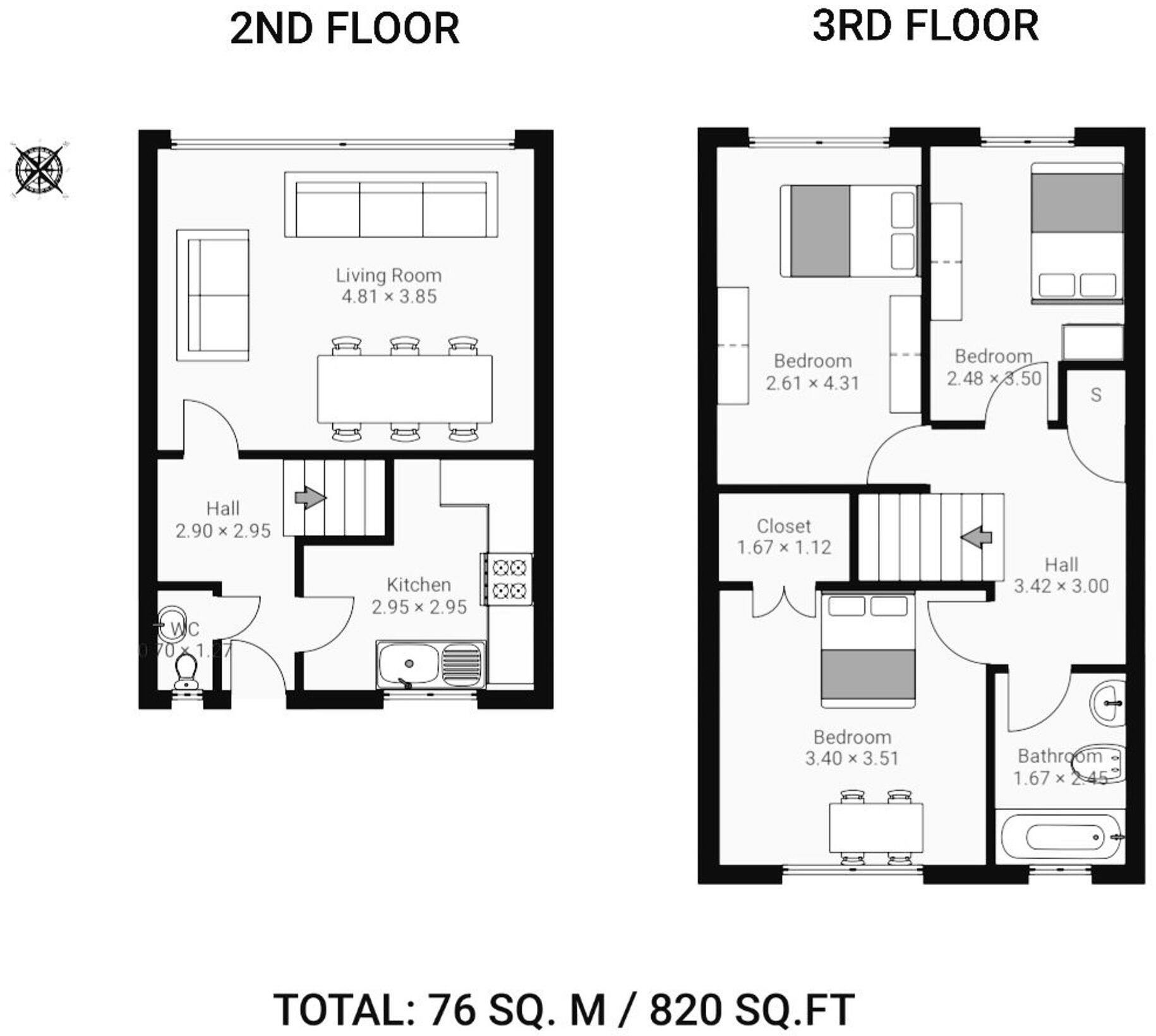 Located on the third and fourth floors of a well-maintained development, the property welcomes you with an entrance hall leading to a convenient guest WC. The spacious kitchen is fitted with modern cupboards, sleek worktops, a gas hob with oven, inset sink, and ample space for additional appliances. Adjacent, a bright and airy reception room—flooded with natural light—provides an ideal space for relaxing or entertaining.