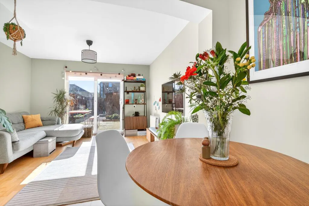 This attractive home offers well-planned accommodation with a bright and spacious feel throughout. The ground floor comprises a separate kitchen and a generous open-plan reception/dining room with direct access to the rear garden, providing a fantastic space for relaxing, dining and entertaining. Upstairs, there are two well-proportioned double bedrooms, including a principal bedroom with built-in storage, as well as a modern family bathroom.
