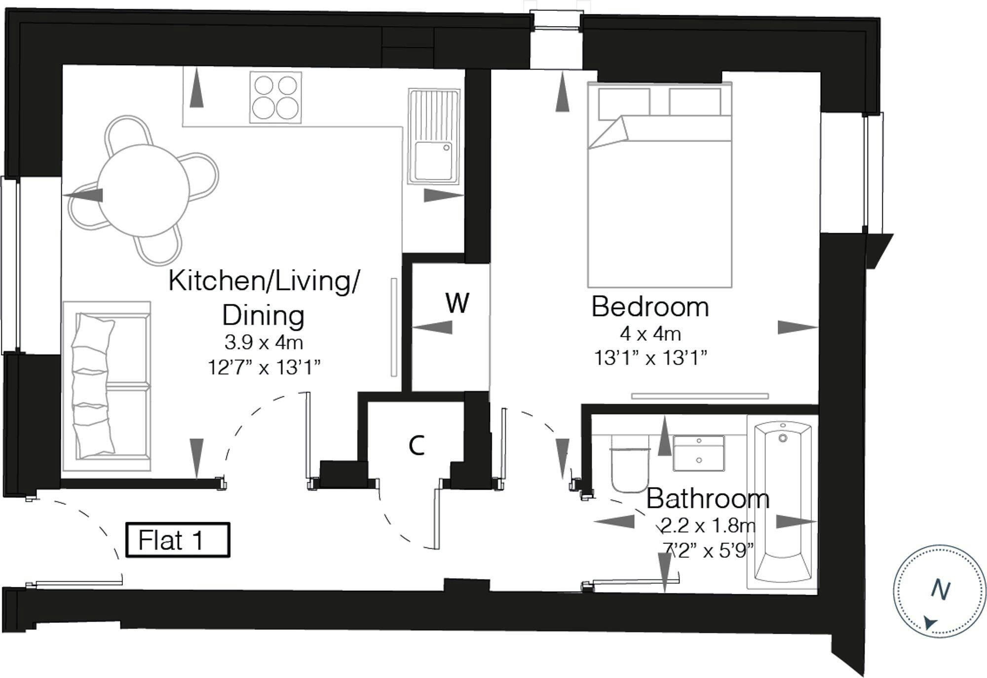 This is a ground floor apartment with a modern fully integrated kitchen/lounge, one double bedroom and fully tiled bathroom.
